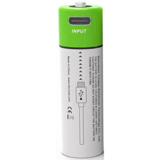 Описание аккумулятора LiitoKala LA-3450T AA 3450mWh 1.5V type-C: