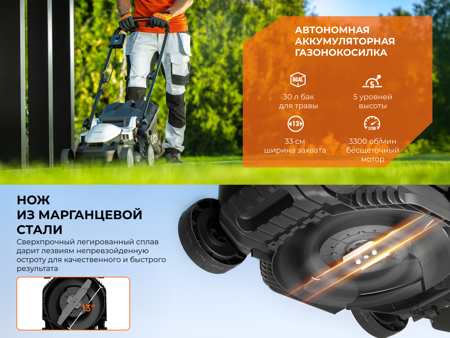 Другие особенности газонокосилки от Litheli: