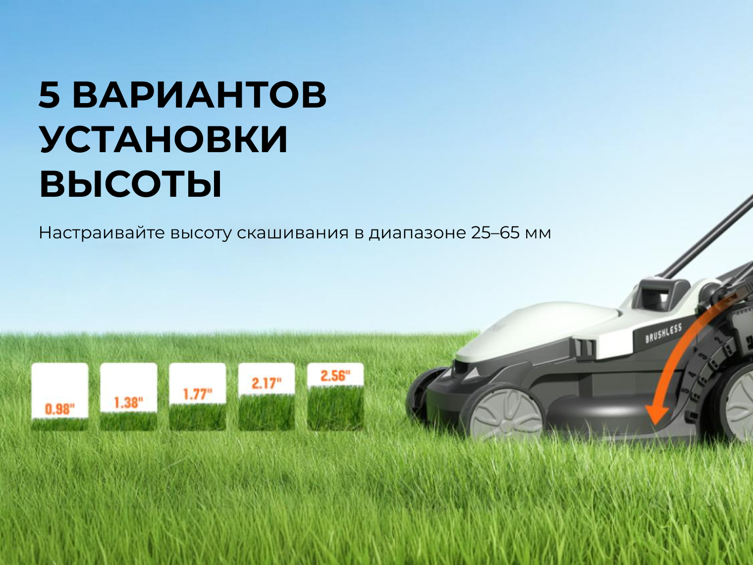 Управление | 5 вариантов высоты скашивания – от 25 до 65 мм |