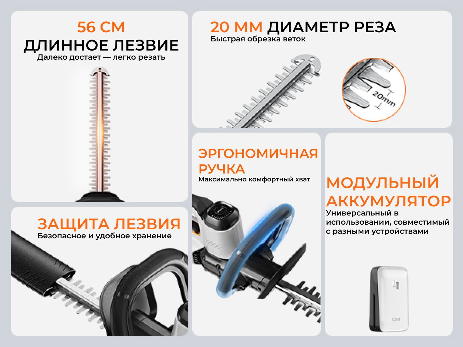 Конструкция кустореза весом всего 2,5 кг гарантирует уверенное маневрирование при стрижке высоких изгородей или создании сложных декоративных форм. Благодаря питанию от съемного павербанка вы абсолютно не привязаны к розеткам и можете свободно работать в любом уголке сада, забыв о бесконечных удлинителях и запахе бензина.