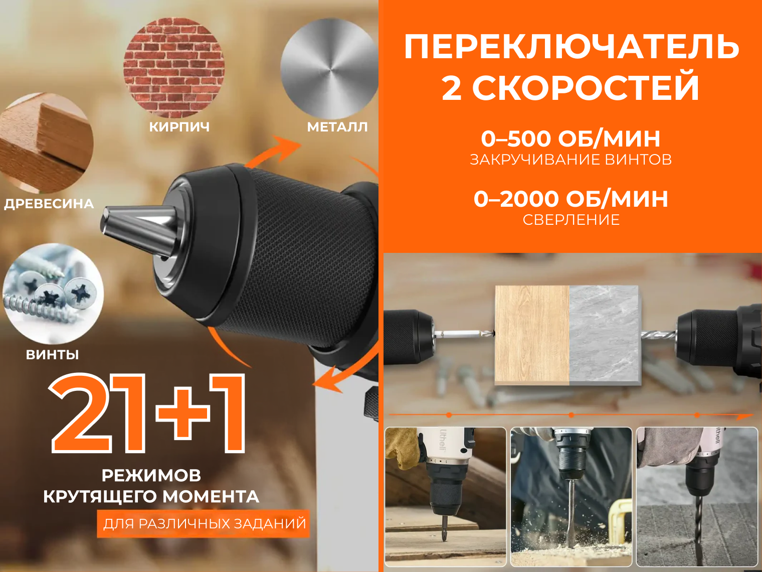 Аккумуляторный шуруповерт Litheli подходит как для профессиональных мастеров, так и для домашнего ремонта. С его помощью вы можете легко закручивать крепеж и сверлить отверстия в древесине, металле и пластике.