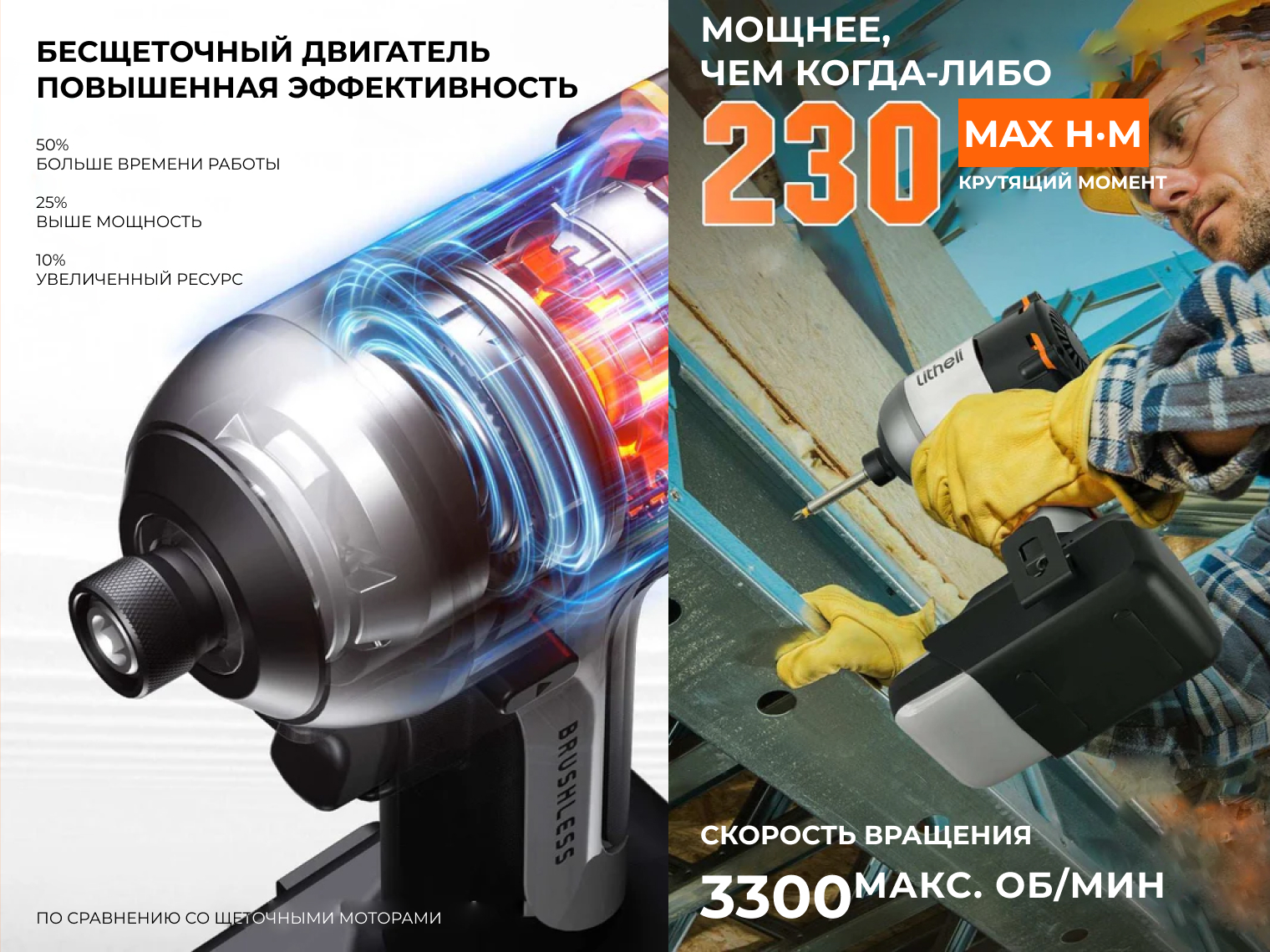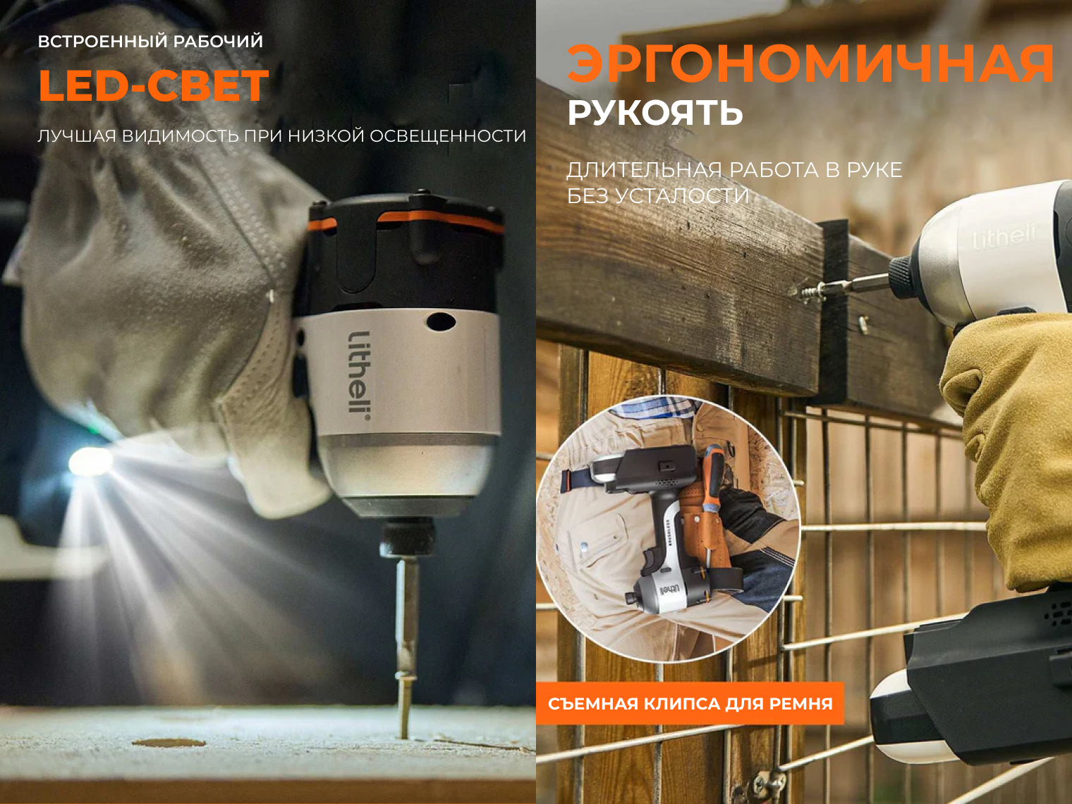 Аккумуляторный винтоверт Litheli U20 предназначен для работ с крупным крепежом, сборки деревянных каркасов и монтажа металлических профилей. Импульсный механизм направляет усилие непосредственно на шлиц самореза, что предотвращает «слизывание» шляпок и снимает нагрузку с вашей кисти.