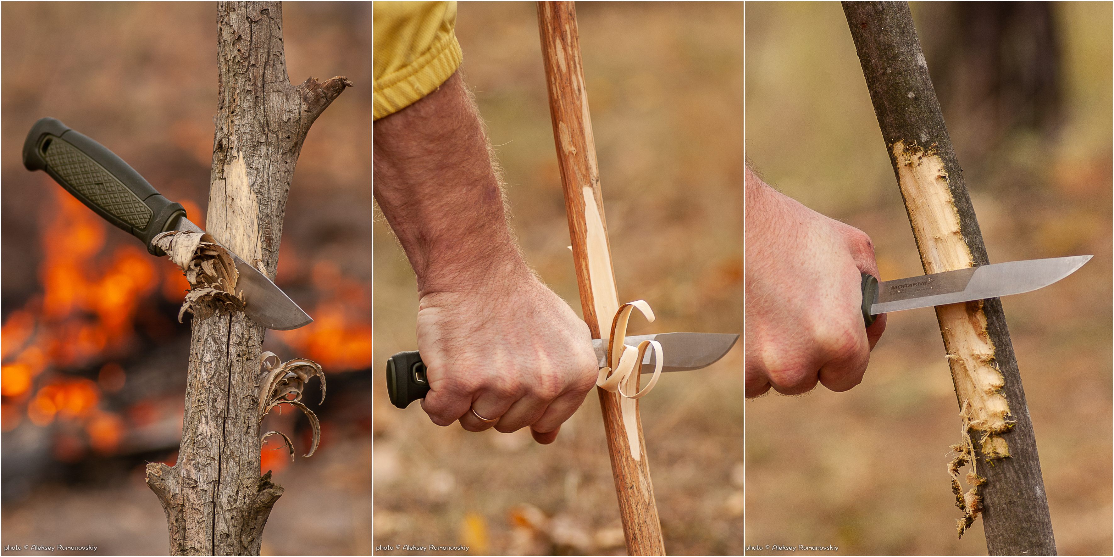 С одной стороны нож не соскальзывает при строгании, но в тоже время заметно “туже идёт” при резе и нужно приноравливаться.