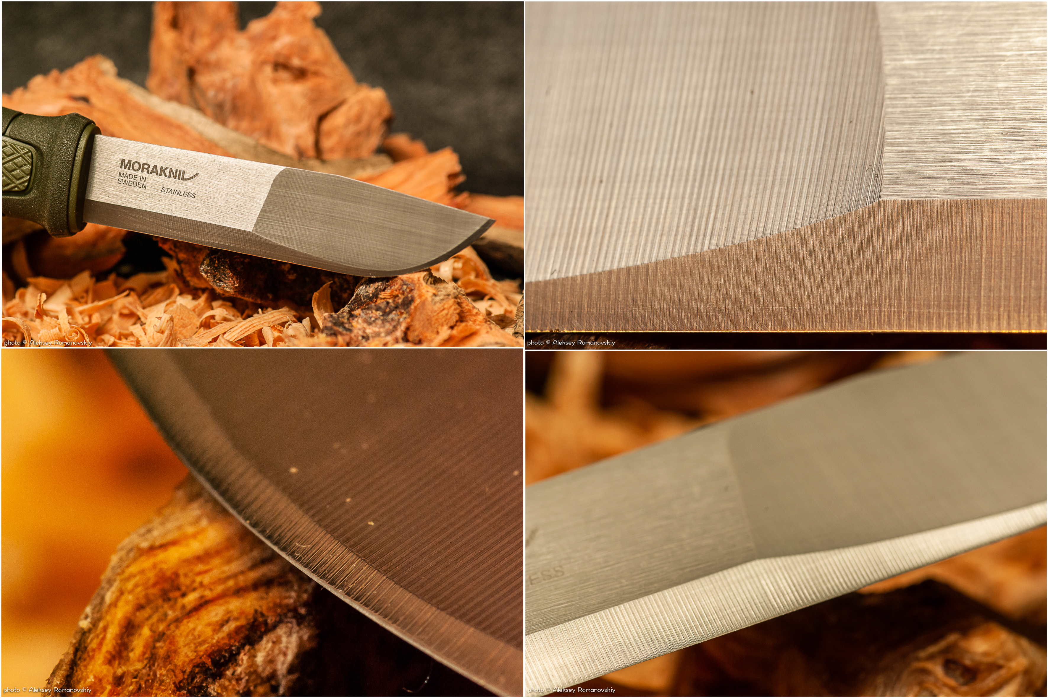 Следующее изменение видимое не сразу и нигде не анонсированное, это замена сканди спусков на прямые, то есть - на клинке появился подвод, он скорее микро чем классический, но всё же он есть. Существует мнение, что обычные прямые спуски долговечнее сканди и больше пригодны для повседневного ножа, не могу сказать что согласен с этим. Сканди спуски на Море очень хорошо себя показали в использовании.