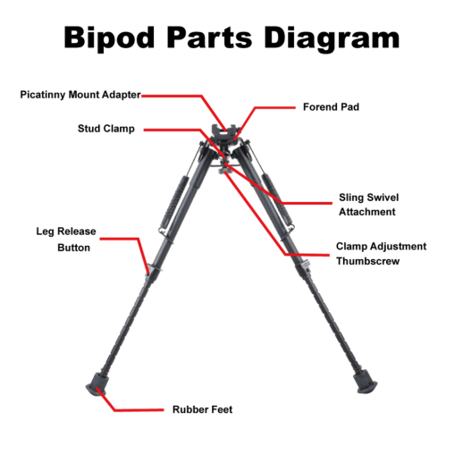 Сошки простые в использовании, имеют прочную конструкцию. Крепятся на винтовки с помощью антабки или планки Пикатинни через адаптер. Высота Rokstad Sling Stud составляет от 230 мм до 345 мм в зависимости от выдвижения ног, которые имеют 11 уровней регулировки (по 10.45 мм каждый уровень). Для того, чтобы выдвинуть ноги, необходимо нажать на кнопку. Резиновые ножки предотвращают скольжение по поверхности, верхняя часть покрыта резиной, чтобы не поцарапать оружие. Сошки изготовлены из высококачественного алюминиевого сплава с прочным черным матовым покрытием. Сошки Rokstad Sling Stud предназначены для огнестрельного оружия.