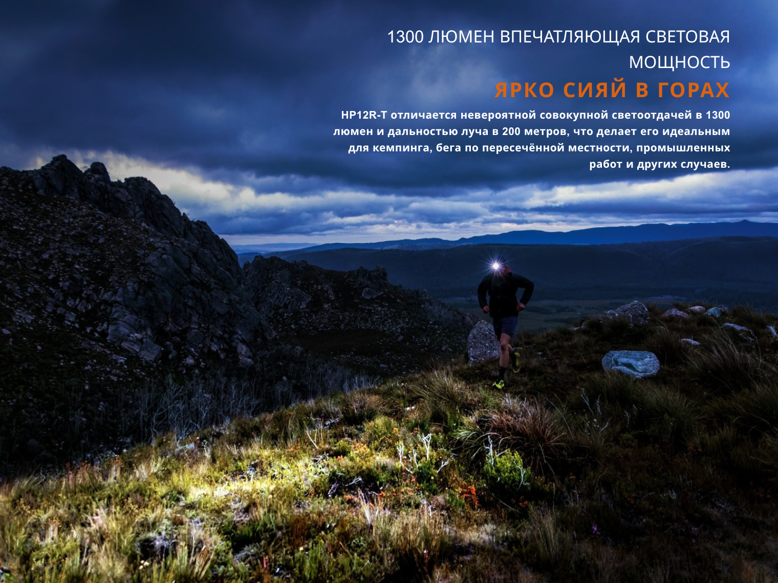 Налобный фонарь Fenix HP12R-T сочетает свет высокой яркости до 1300 люменов, точную настройку светового потока и продуманную конструкцию для комфортного использования в движении. Это профессиональная модель, разработанная для бегунов, трейлраннеров, туристов, строителей и специалистов, работающих в условиях плохой видимости.