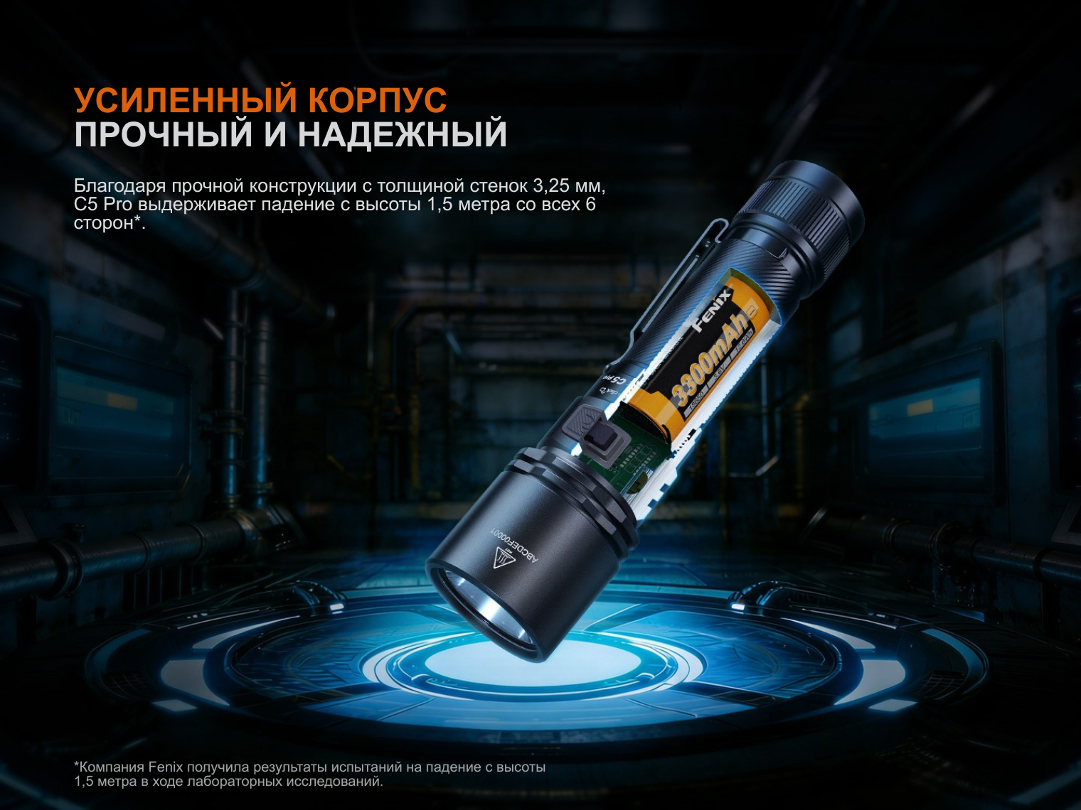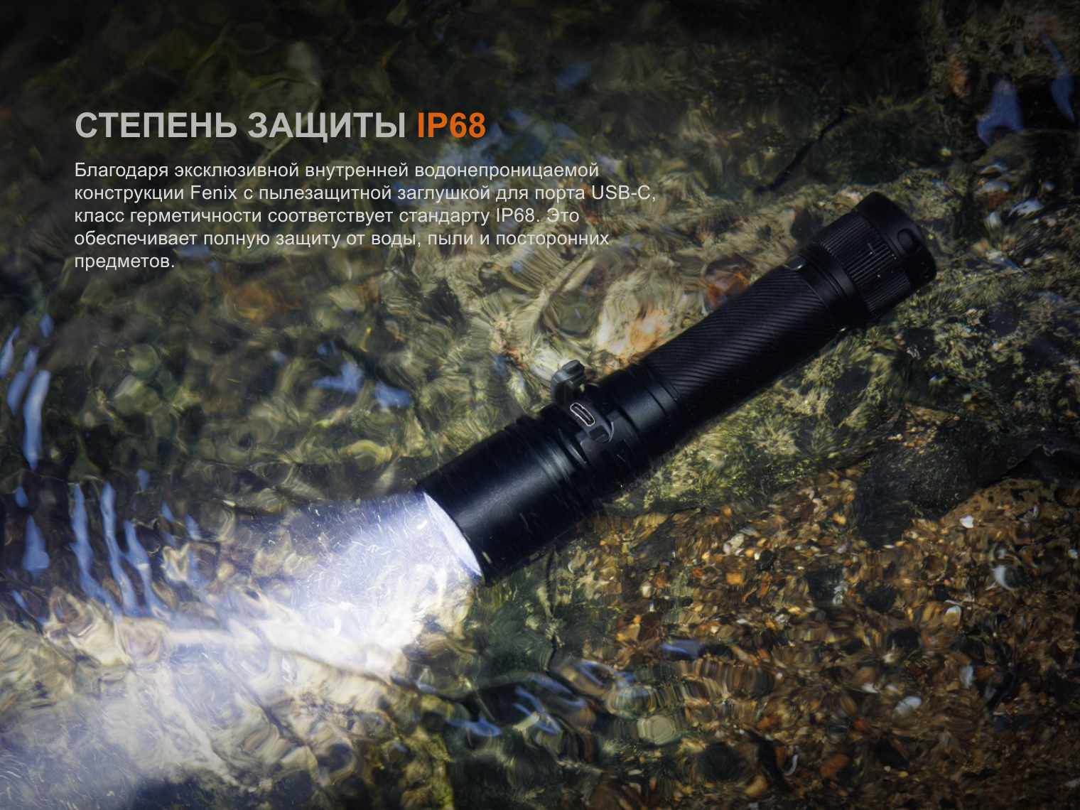 Комплектация | Fenix C5 Pro, аккумулятор ARB-L18-3300, кабель для зарядки USB Type-C, темляк на руку, запасное уплотнительное кольцо, инструкция |