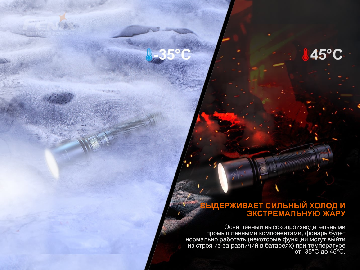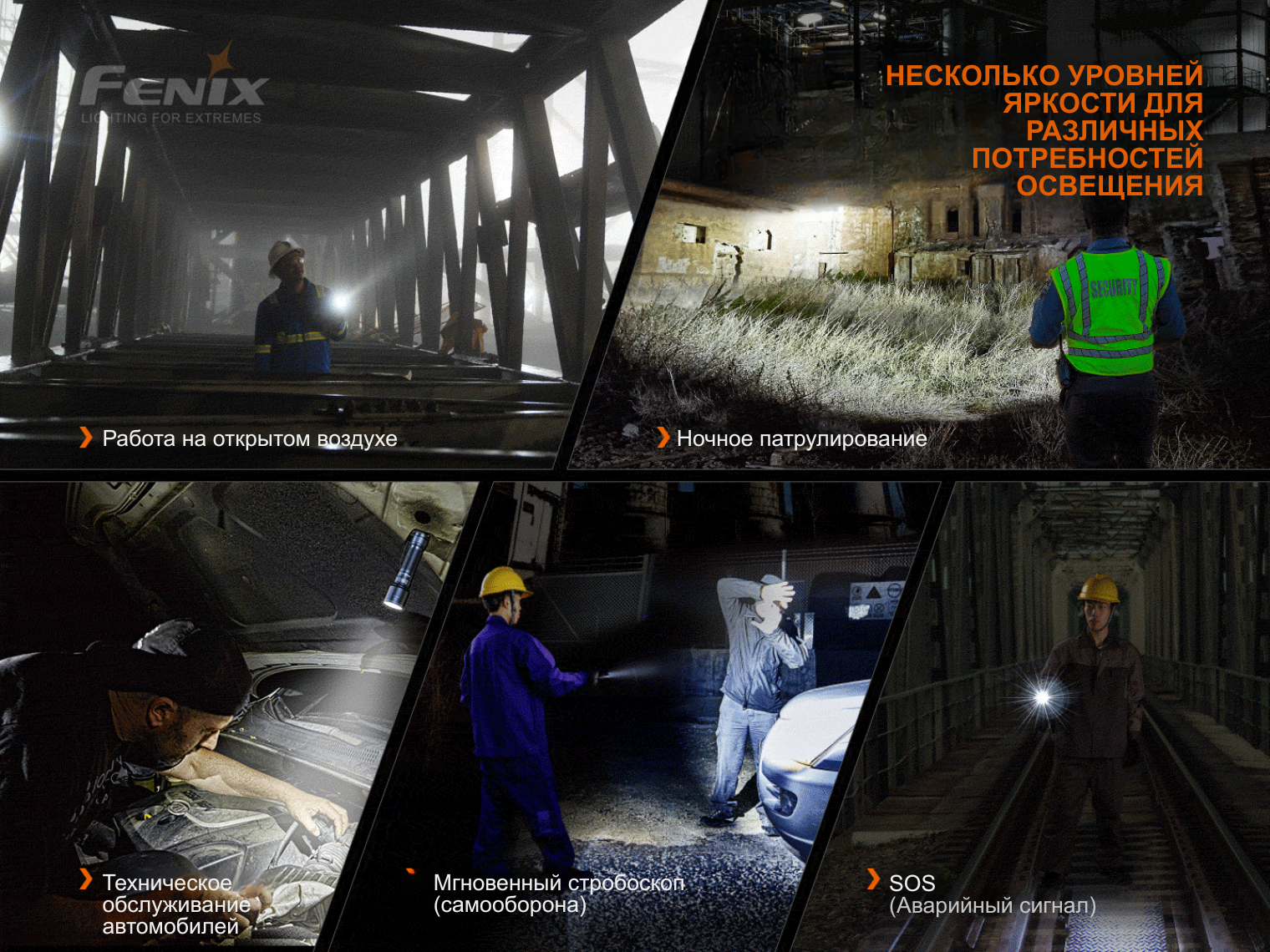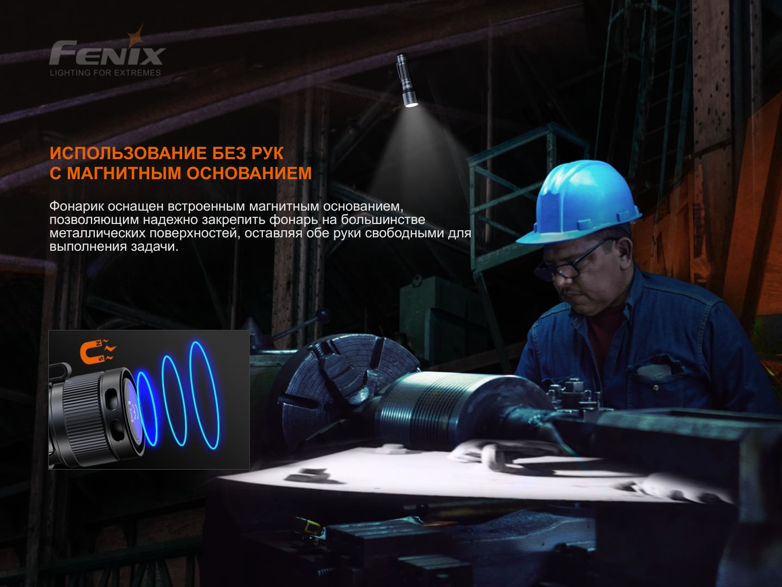 - ручной фонарь Fenix со встроенным магнитом и съемной клипсой из стали;