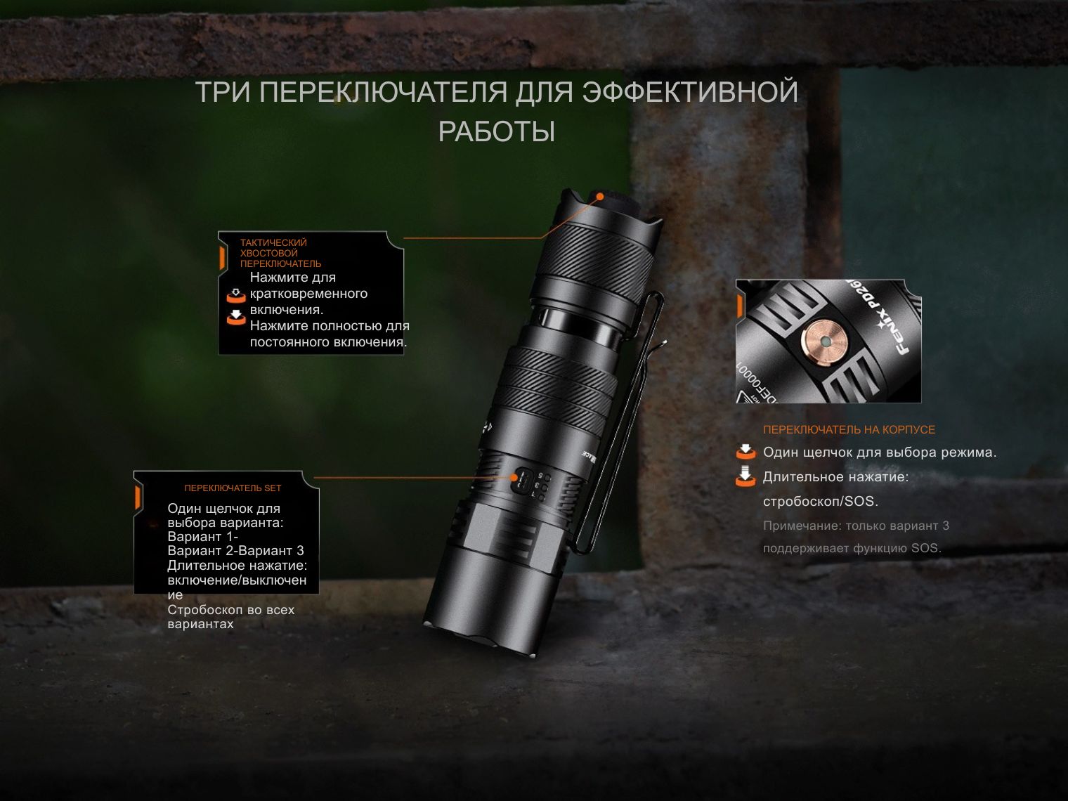 Сверхкомпактный фонарь Fenix PD26R ACE предназначен для тактического использования в суровых условиях, где важны мощность луча, быстрая управляемость и стойкость к внешним факторам.