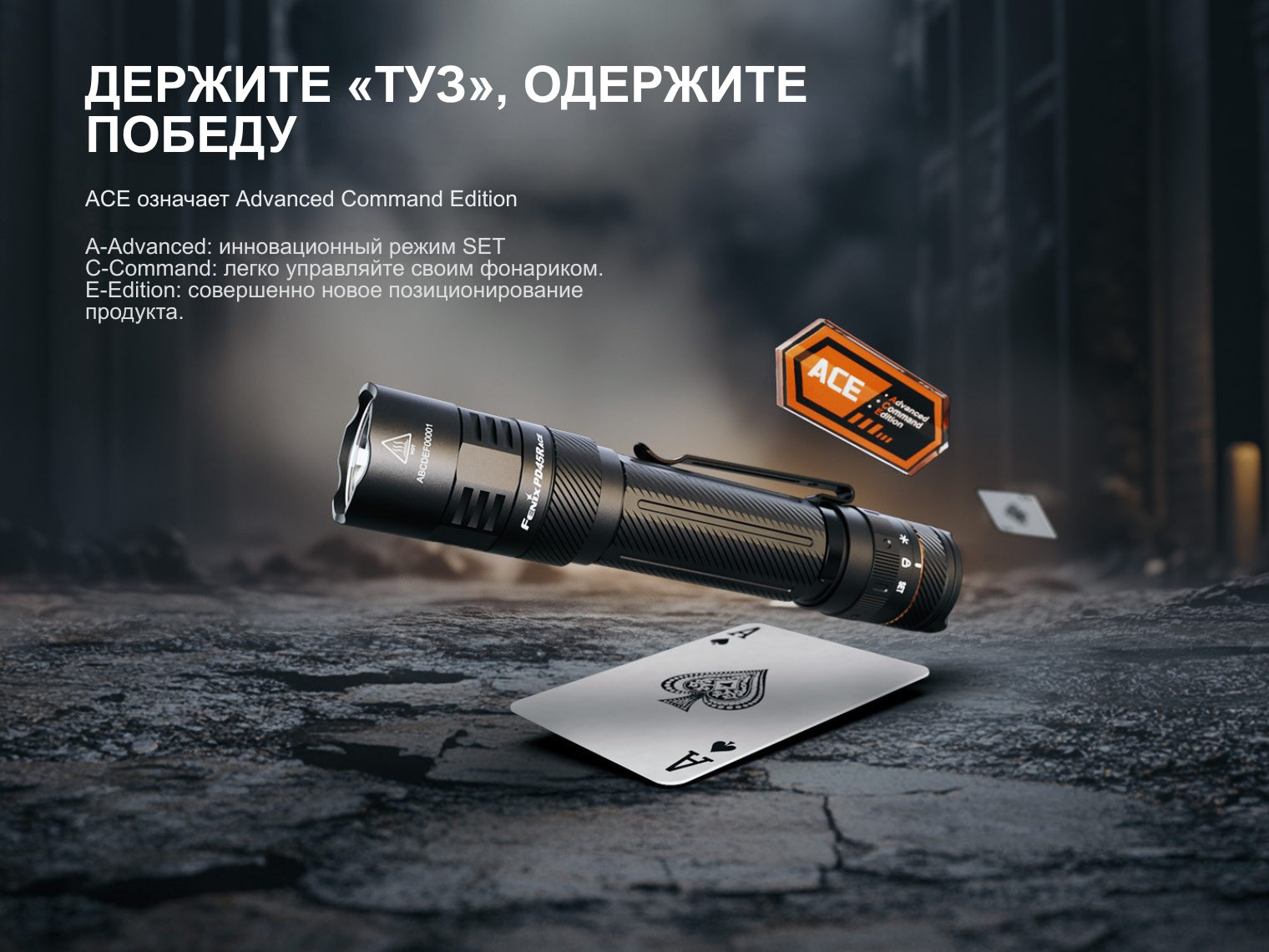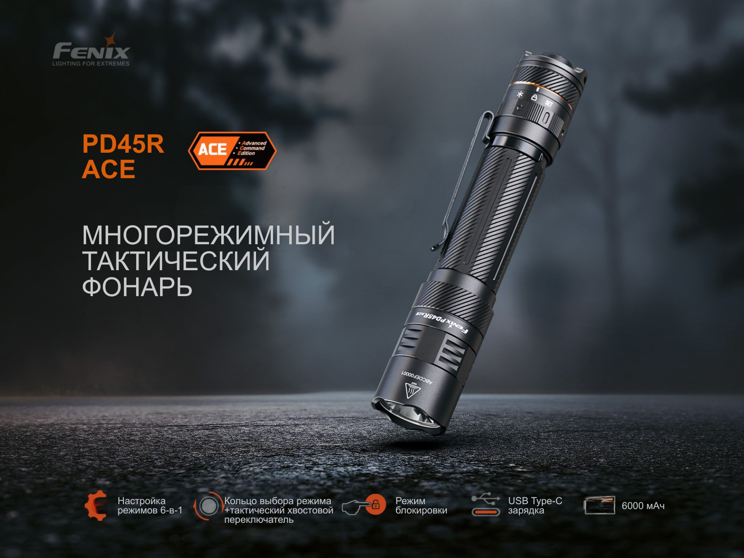 Фонарь Fenix PD45R ACE является частью серии ACE (Advanced Command Edition) — специальной линейки для тактики, служебных целей и повседневного применения.