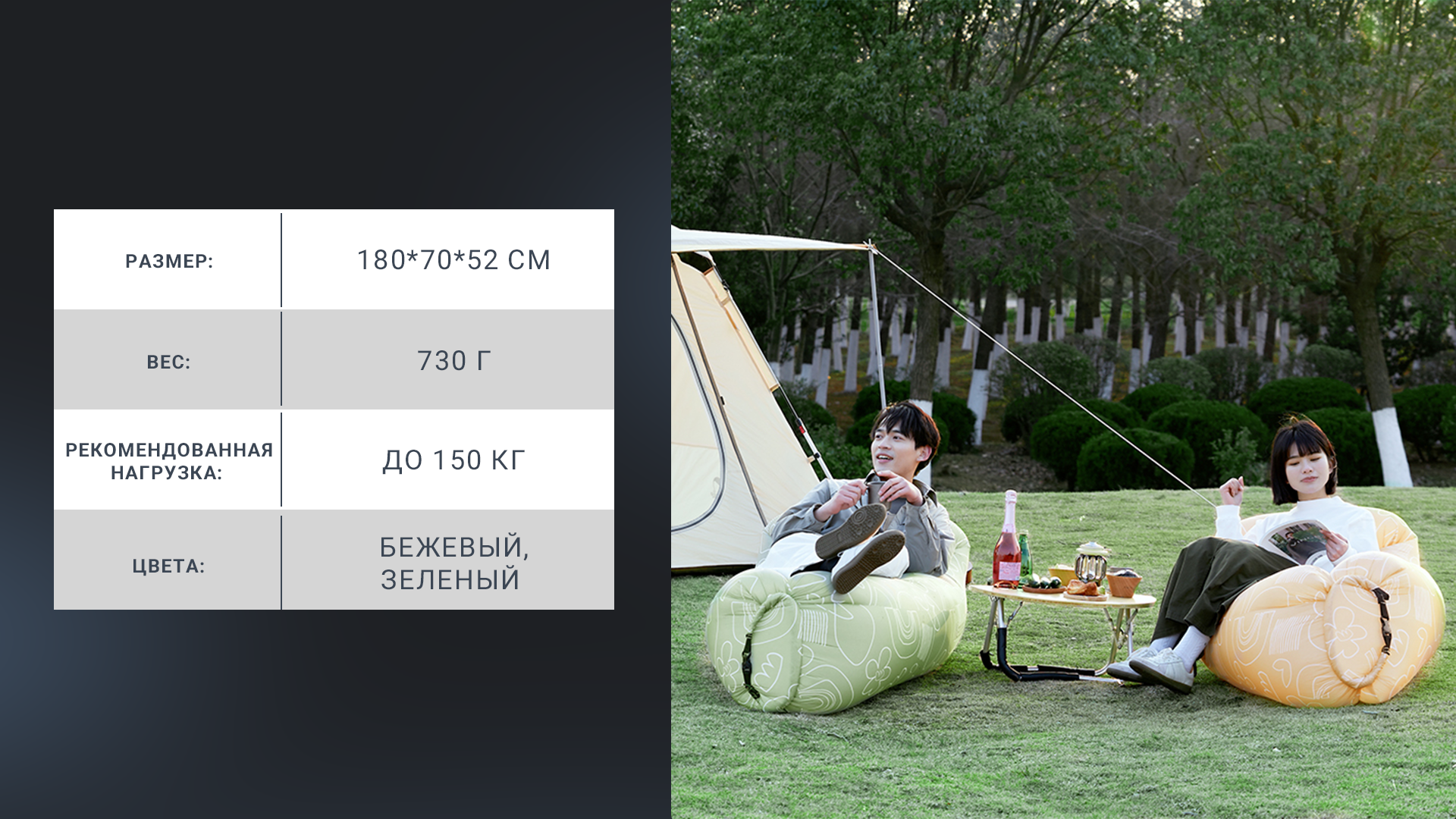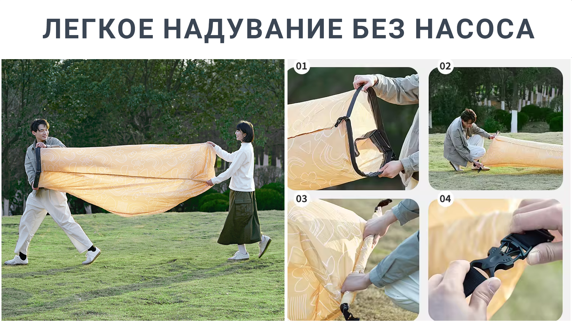 Ламзак предоставляет собой удобное место для отдыха. Он может служить альтернативой стульям или матрасам на открытом воздухе и обеспечивать поддержку тела во время сидения или лежания. Этот мешок можно использоваться как кресло, лежак и даже импровизированный гамак. Он подходит для различных ситуаций и активностей. Ламзак изготовлен из материала, устойчивого к порывам ветра и к действию влаги, что делает его долговечным и способным выдерживать различные условия эксплуатации. Надувной мешок можно использовать для активного отдыха на природе. Он выполнен в приятном бежевом цвете и украшен абстрактным принтом. Изделие легко очищается от загрязнений и быстро сохнет в случае намокания. Размер его в сложенном виде 30*18 см, в разложенном – 180*70*52 см. Вес изделия составляет 730 грамм.