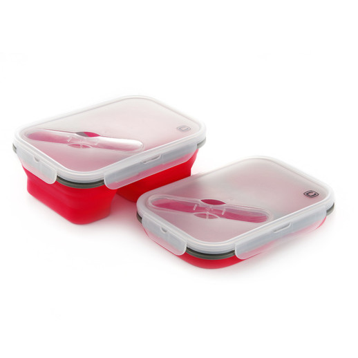Ланчбокс складной с крышкой-защелкой и ловилкой красный СИЛА (400 мл/650 мл)