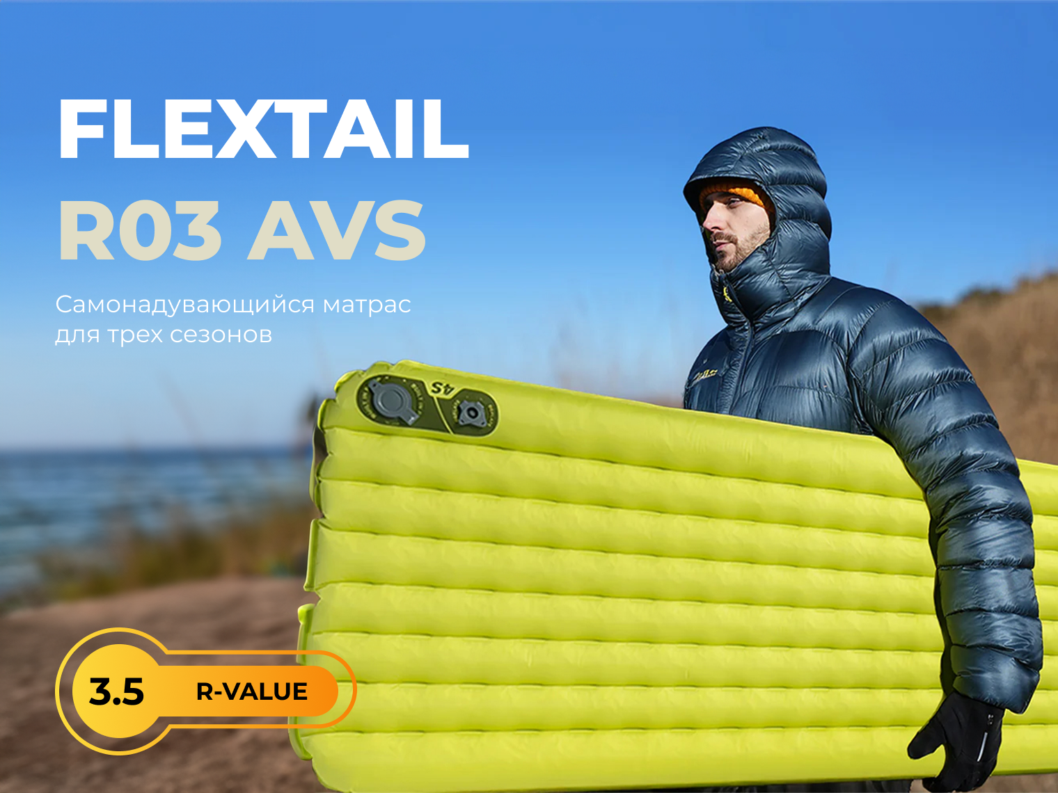 Подготовка спального места с Flextail R03 AVS Regular полностью автоматизирована. Эта модель воплощает концепцию «умного» снаряжения, где высокие технологии обеспечивают максимальный отдых при минимальном весе. Благодаря сочетанию износостойкого нейлона и инновационной системы надувания, матрас обеспечивает идеальный баланс между мобильностью и физиологически правильной поддержкой тела.
