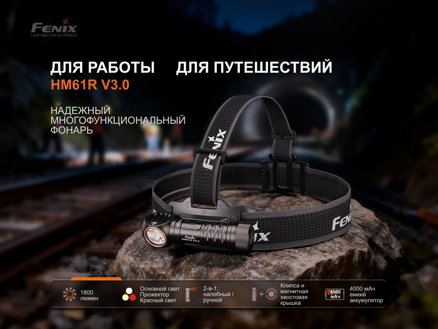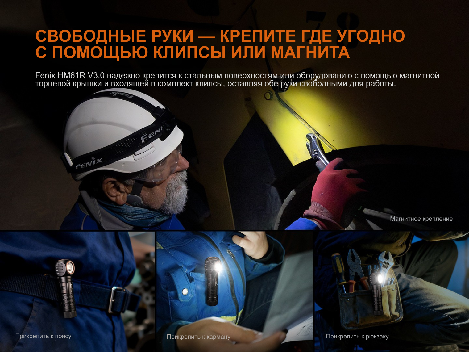 Fenix HM61R V3.0 — это универсальное осветительное устройство, которое благодаря съемному креплению и стальной клипсе трансформируется из налобного фонаря в ручной или нагрудный.