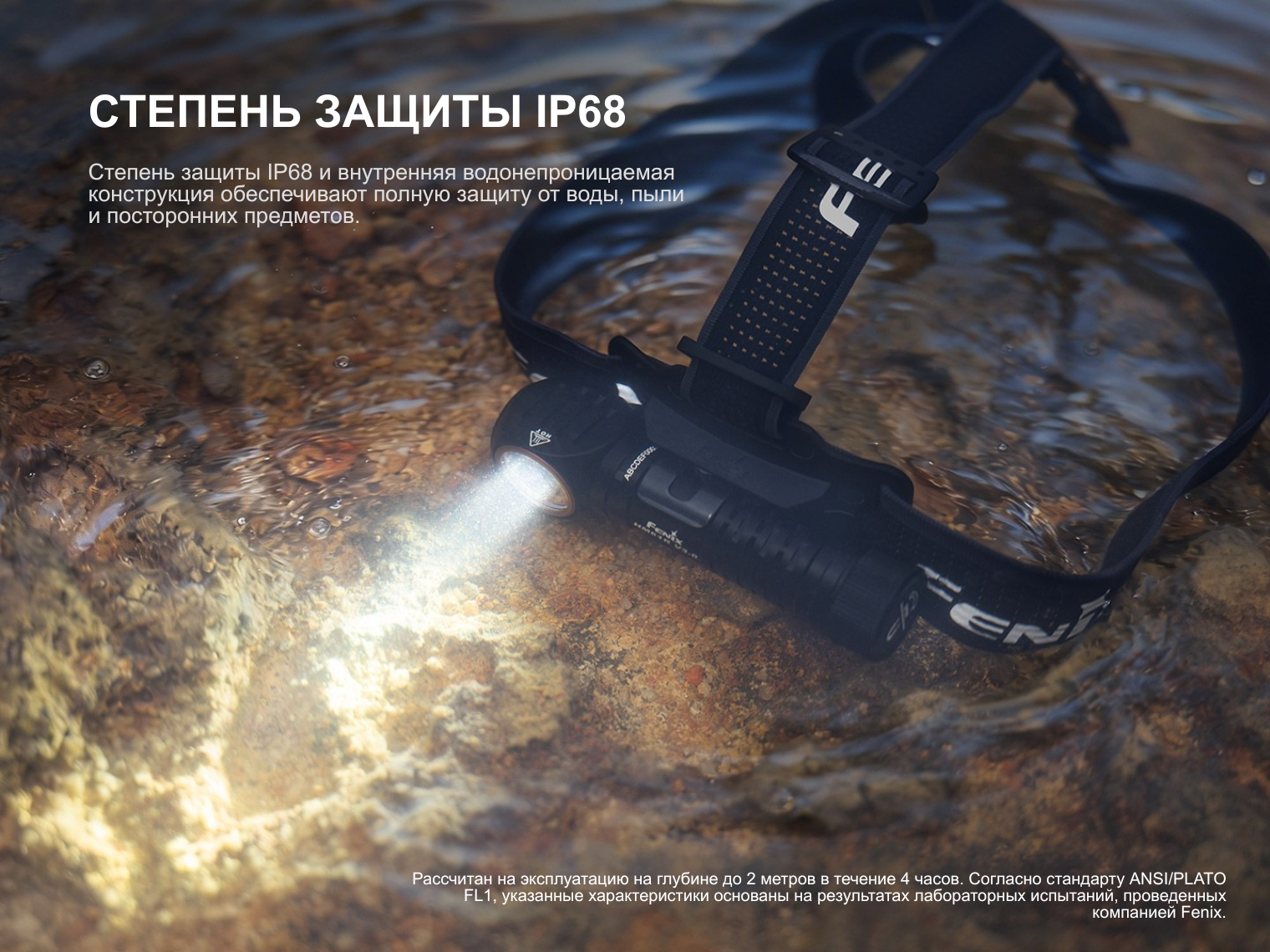 Степень герметичности IP68 гарантирует полную пыленепроницаемость и работоспособность при погружении в воду на глубину до 2 м в течение 30 мин.