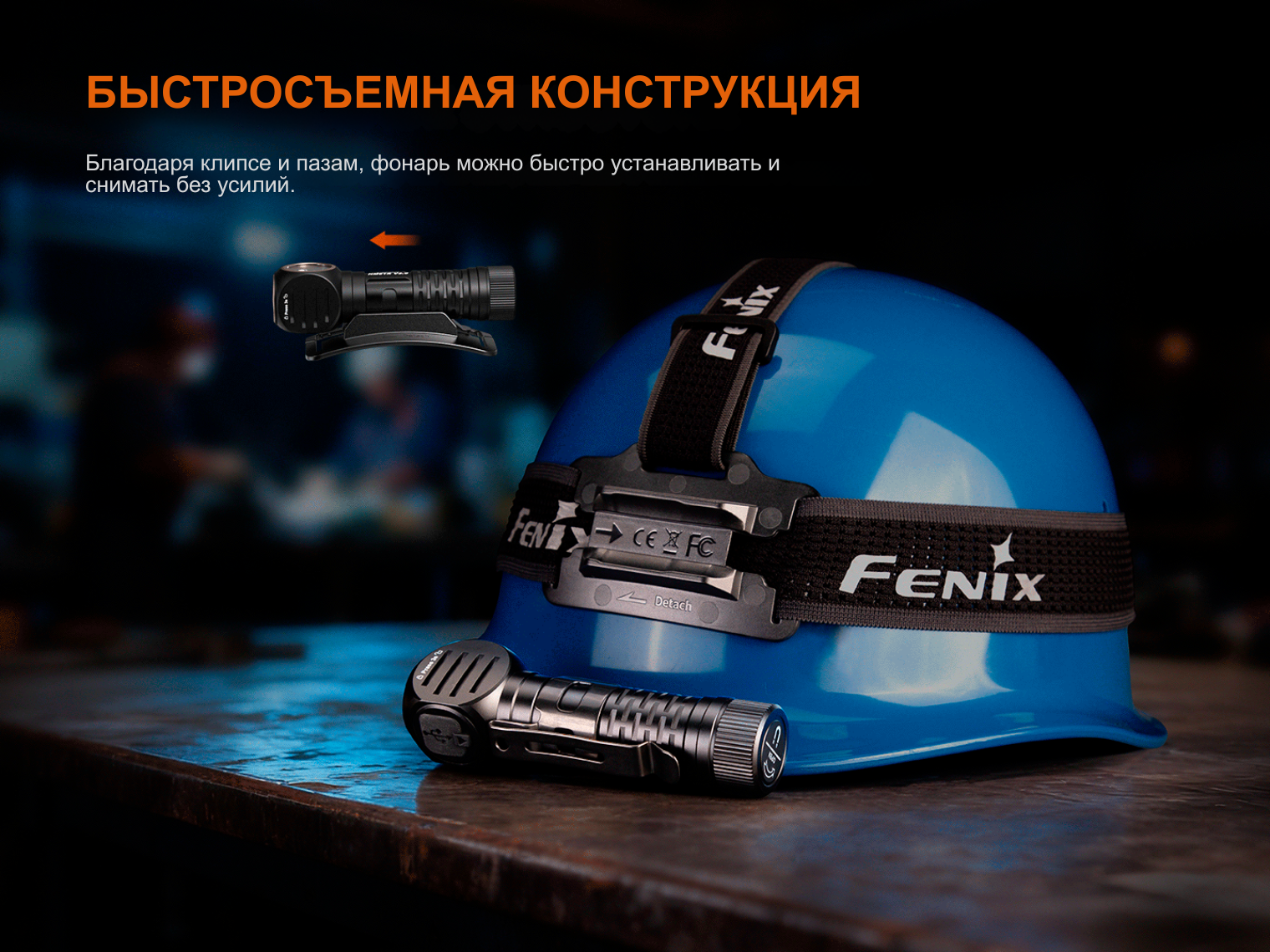 Фонарь мгновенно снимается с наголовного крепления благодаря системе быстрой фиксации, а светоотражающие элементы на ленте делают вас заметным в темноте.