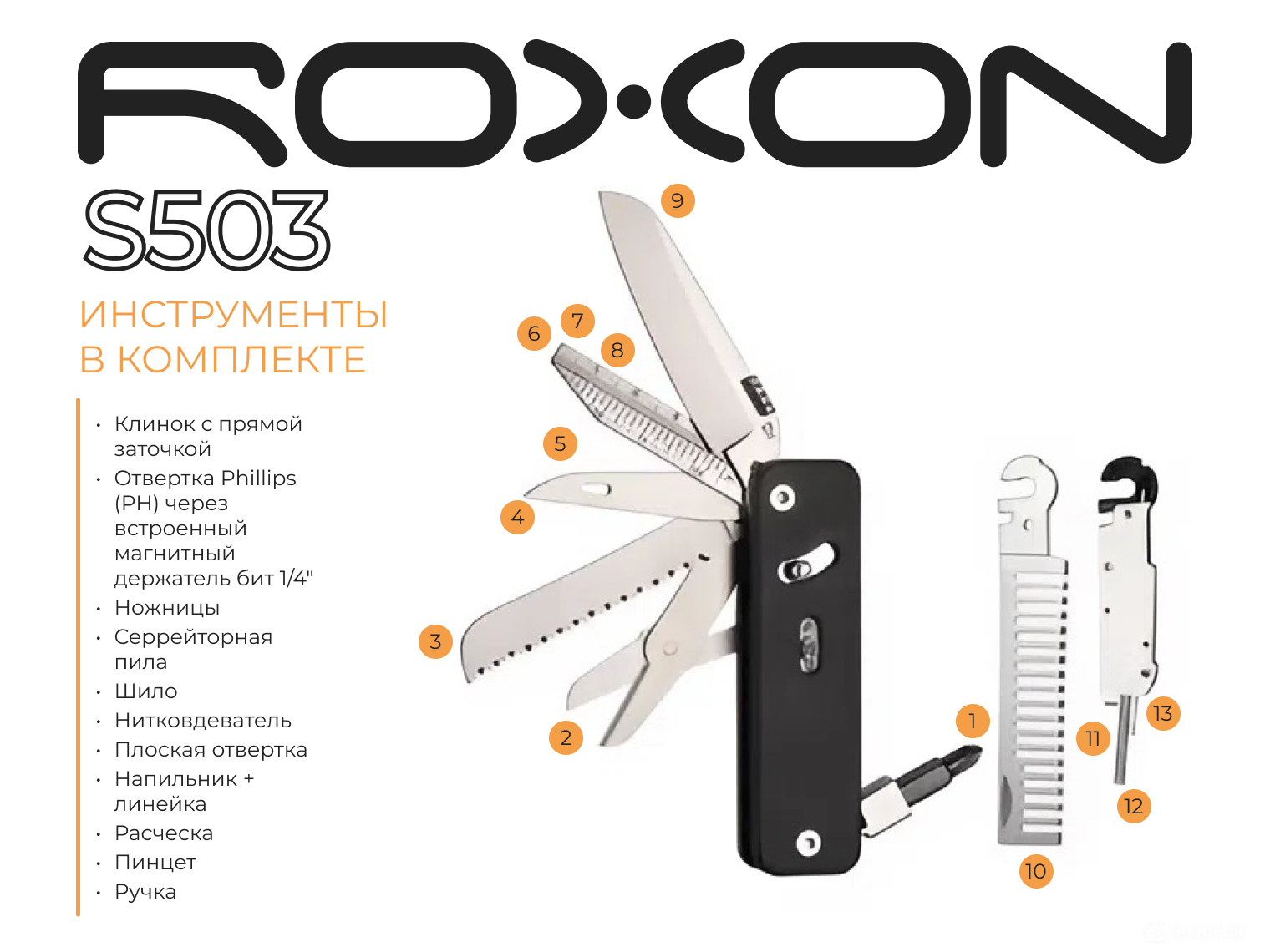Roxon Flex Companion S503G имеет следующие инструменты: