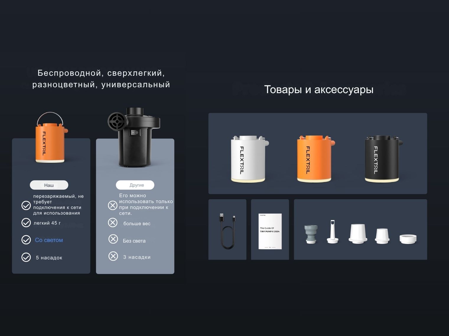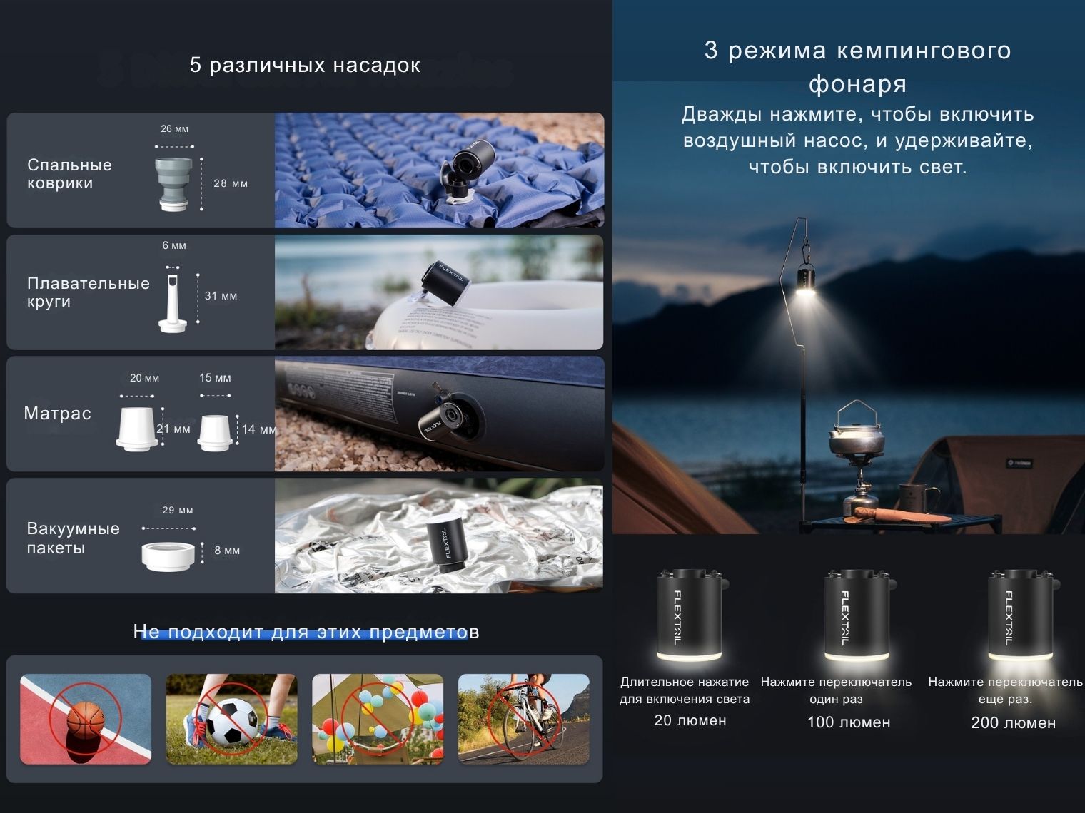 - мини-насос Flextail с функциями 3-в-1 (накачивание, сдувание, кемпинговый свет);