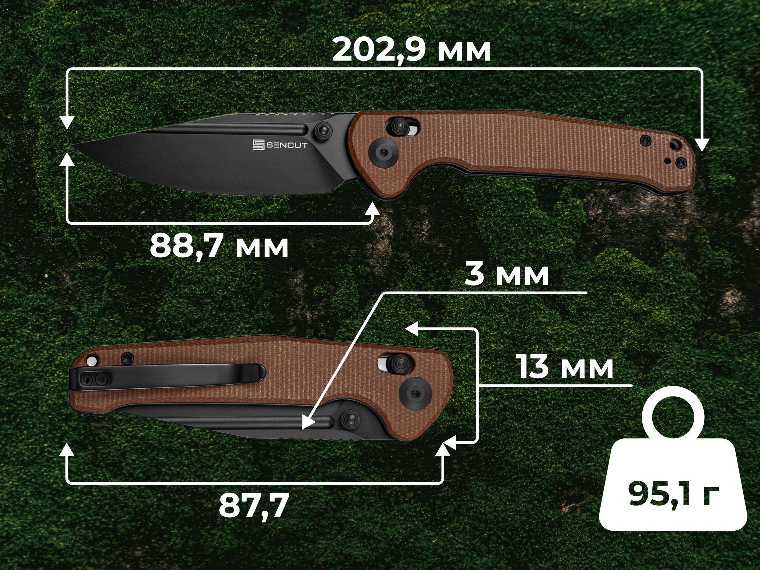 Нож весит всего 95,1 г, поэтому он почти неощутим в кармане. Надежная стальная клипса позволяет удобно закрепить его на поясе или снаряжении. Для максимального удобства клипсу можно переставить под левую или правую руку.