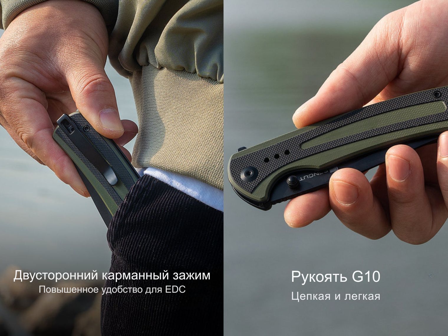 - есть двухпозиционная клипса Tip-Up из нержавеющей стали;