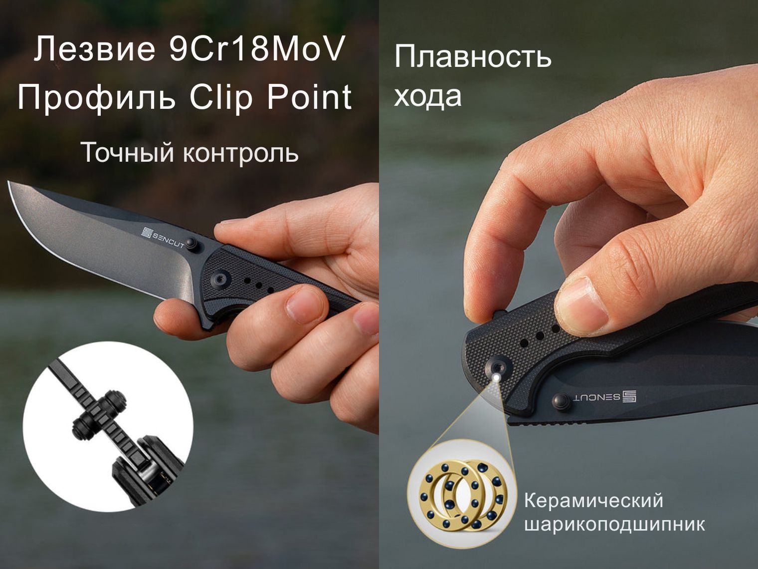 - складной нож Sencut с керамическими подшипниками в осевом узле;