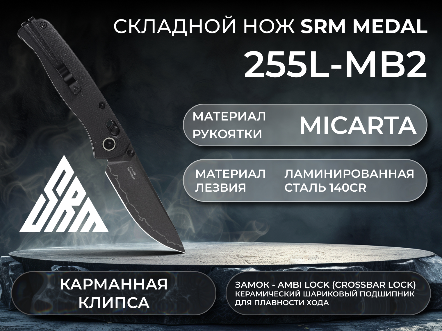 Описание складного ножа SRM Medal 255L-MB2, черного: