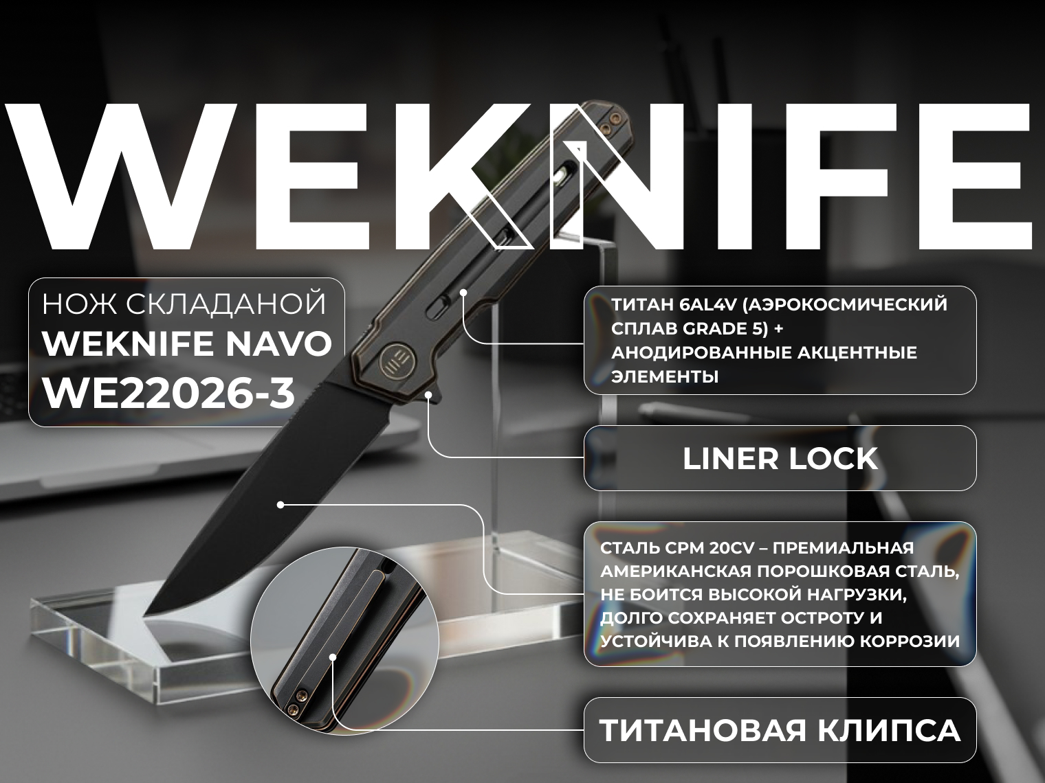 Складной нож WE Knife Navo создан в коллаборации с Остапом Хелем — всемирно известным ножевым дизайнером. Геометрия клинка продумана для точного, контролируемого реза в городских и полевых сценариях, а футуристическая форма с прямыми линиями подчеркивает премиальность инструмента.