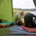 - Оттяжки палатки имеют три точки крепления для большей надежности, желто-оранжевый цвет и вплетенную отражающую нить, благодаря чему они остаются хорошо заметными в светлое время суток и темное время суток в свете фонарика. Шесть оттяжек спарены, что увеличивает стойкость палатки и сопротивление дождю и ветровым нагрузкам.
