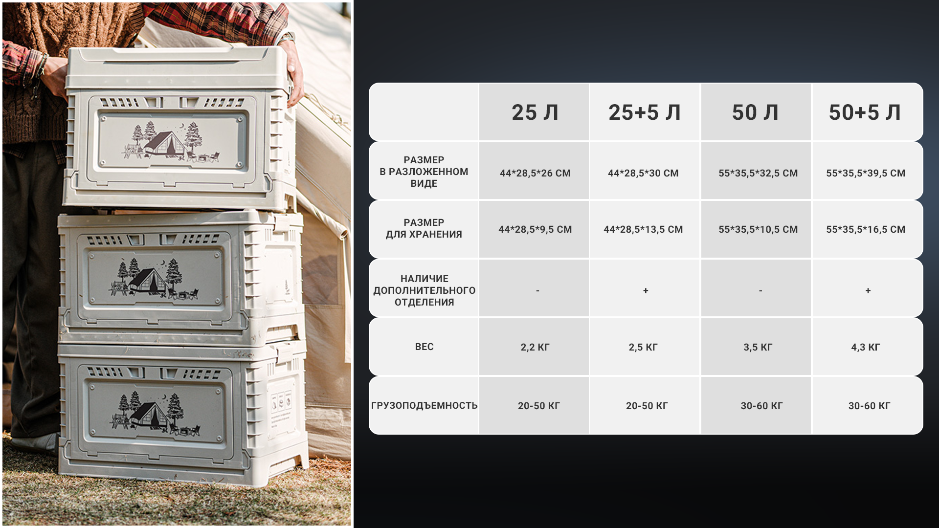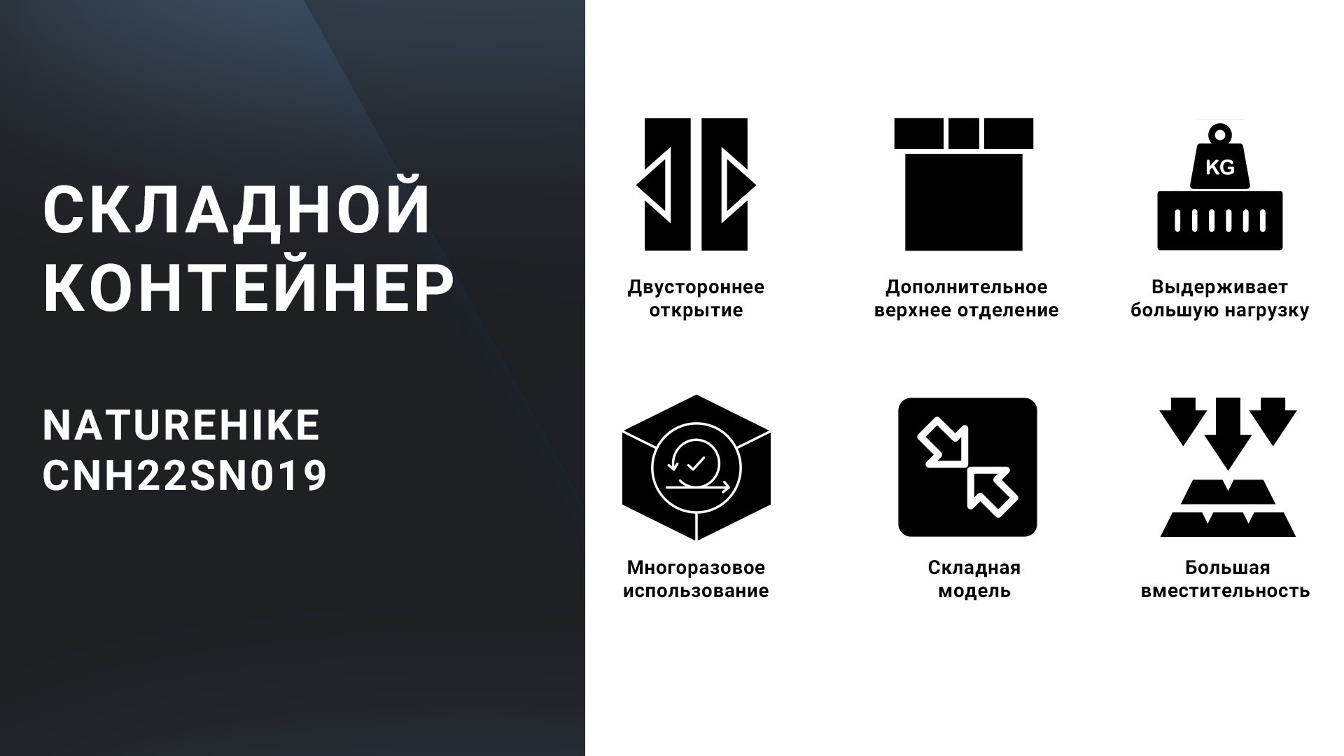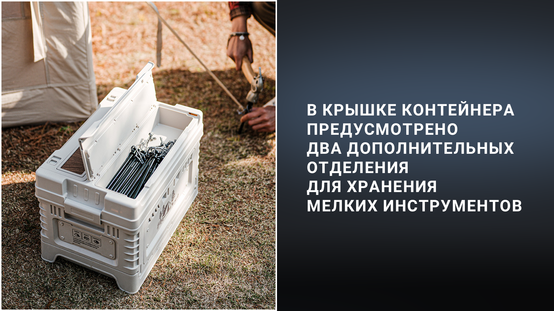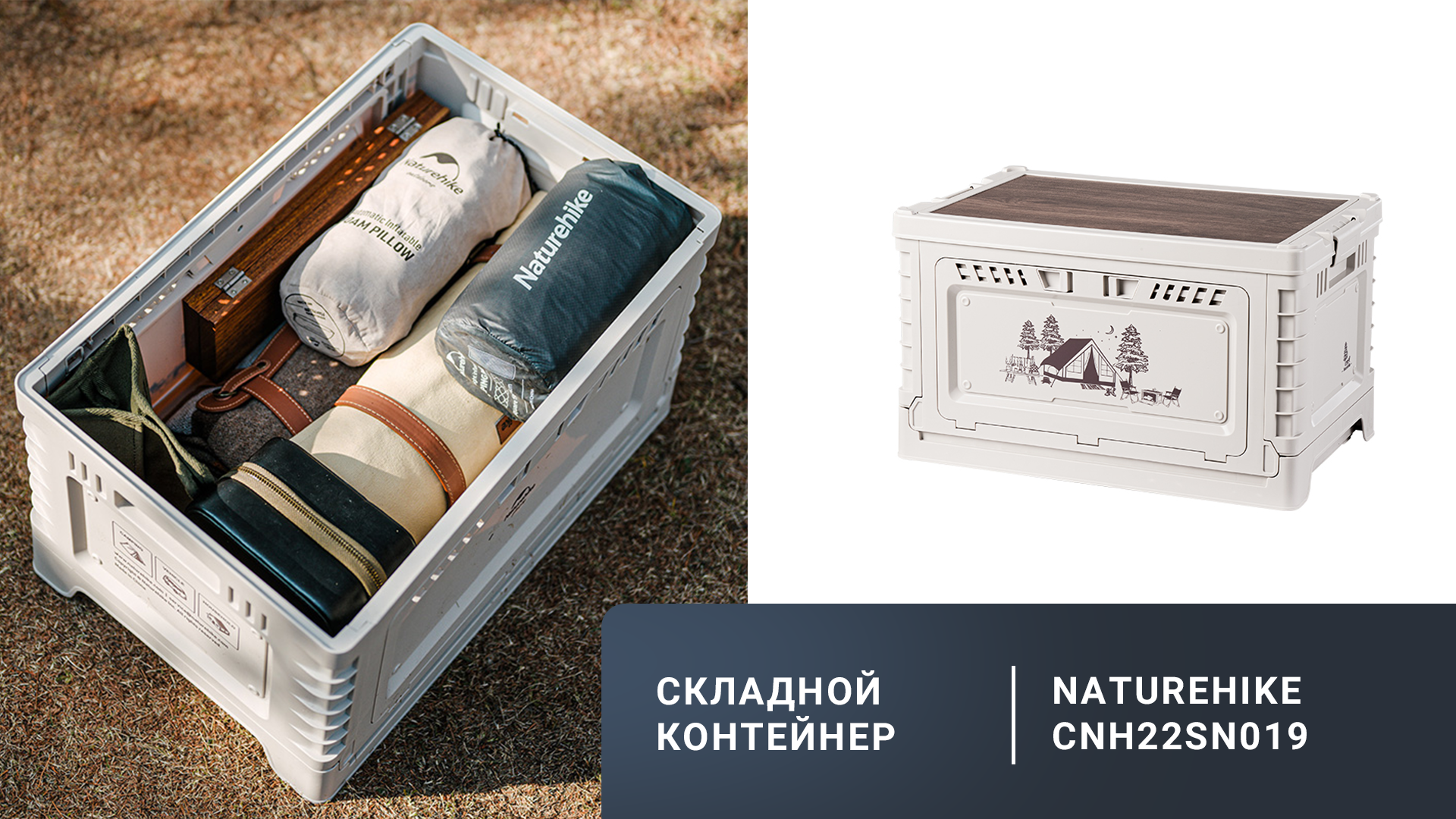 Контейнер CNH22SN019 позволяет с комфортом обустроить место для загородного отдыха, обеспечивая удобное хранение переносимого снаряжения или продуктов питания. Конструкцию также можно использовать в качестве импровизированного столика или тумбы.