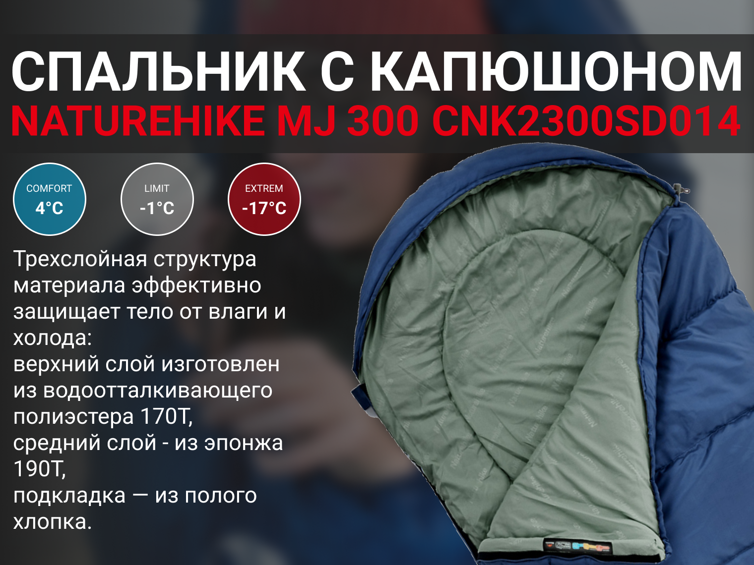 Описание спальника с капюшоном Naturehike MJ300 CNK2300SD014, темно-голубого: