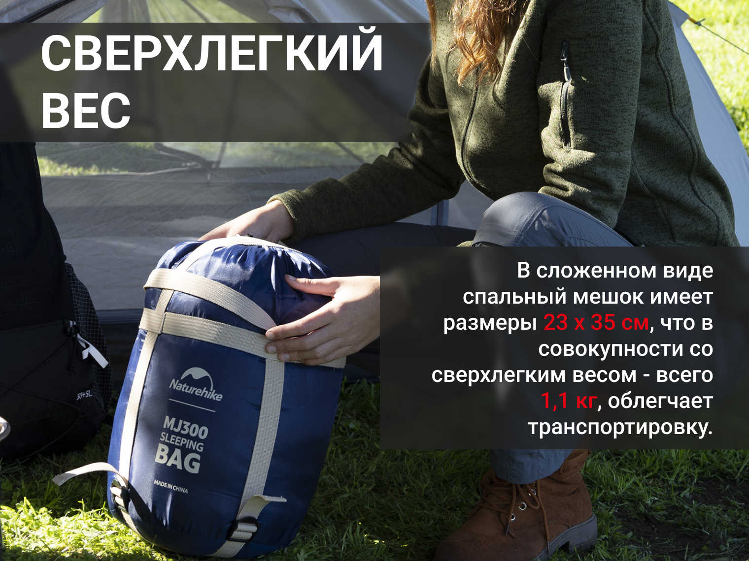 Благодаря многослойной структуре материала спальный мешок Naturehike MJ300 эффективно защищает тело от влаги и холода, даря телу максимальный комфорт для здорового сна в прохладное межсезонье.