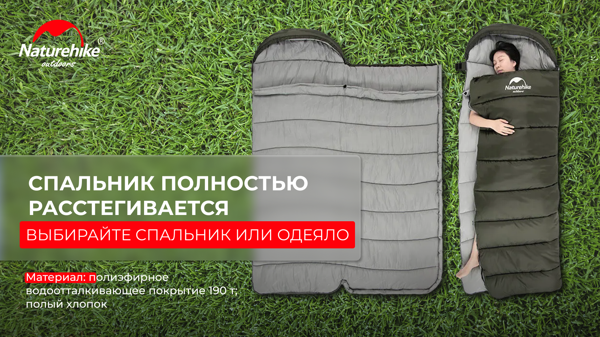 Описание спальника с капюшоном Naturehike U350S NH20MSD07, (-3°C), правого, коричневого: