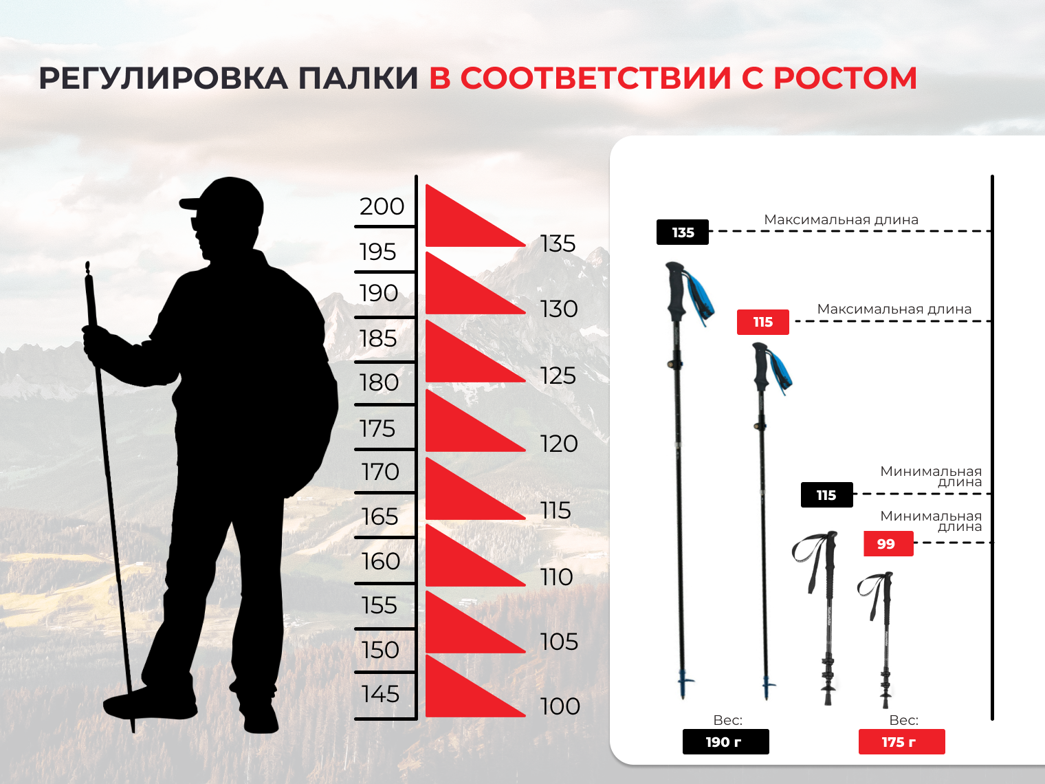 Описание треккинговых палок Naturehike ST07 NH18D010-Z, 115-135 см, бордовых: