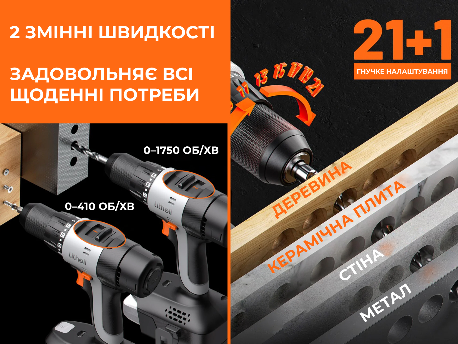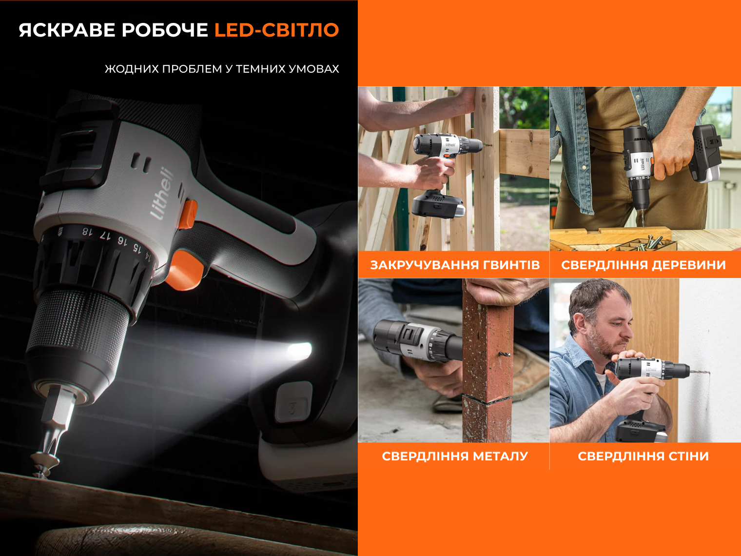 - дриль-шурупокрут Litheli з живленням від УМБ 20000 mAh (є в комплекті);