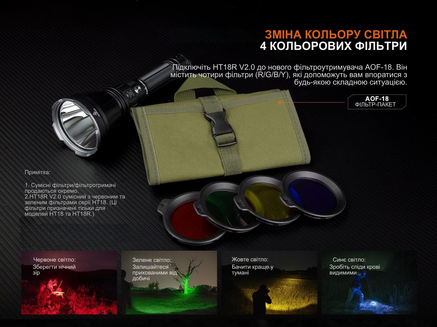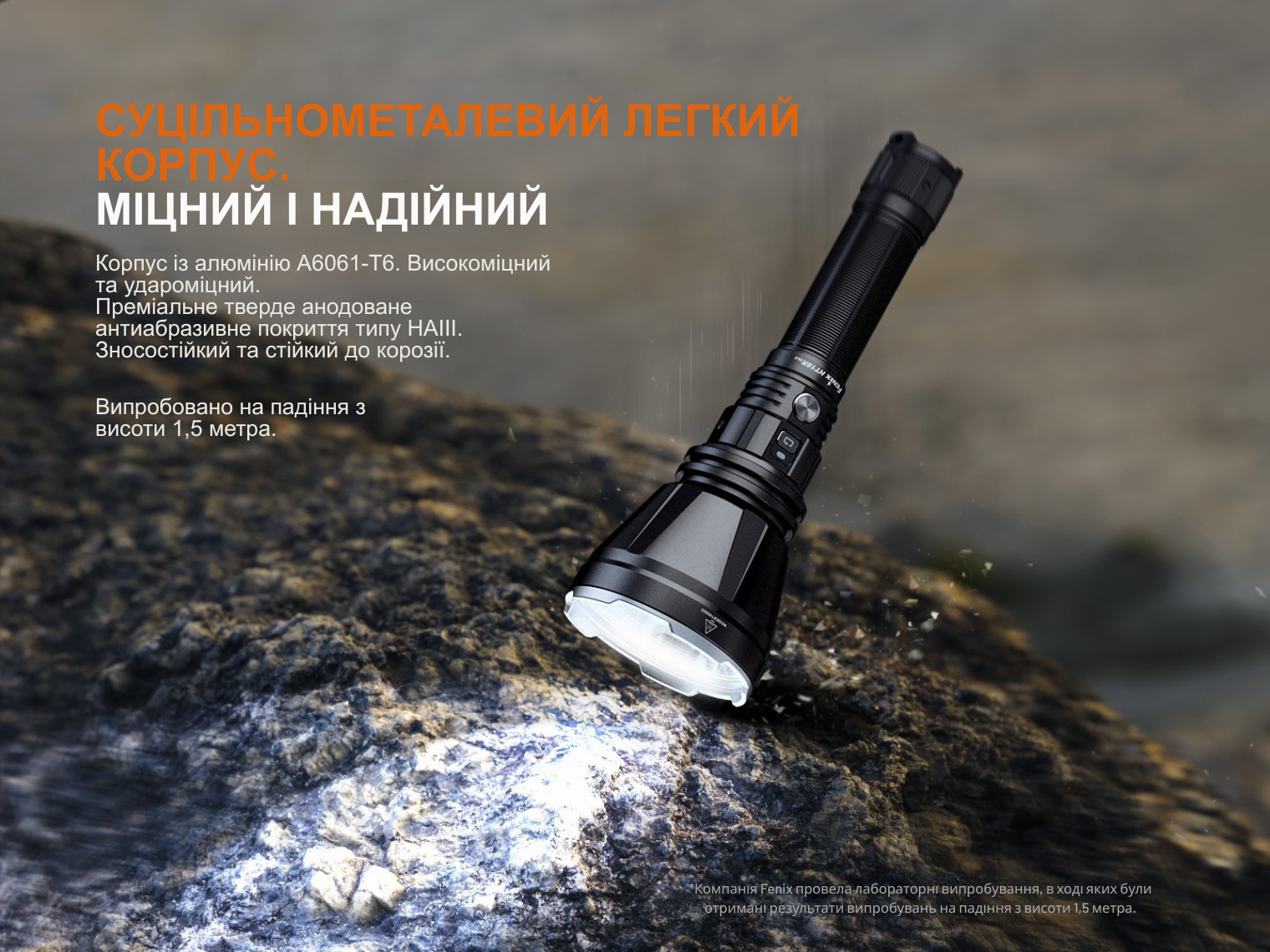 - ручний надпотужний ліхтар Fenix HT18R v2.0 з лінзою із загартованого скла;