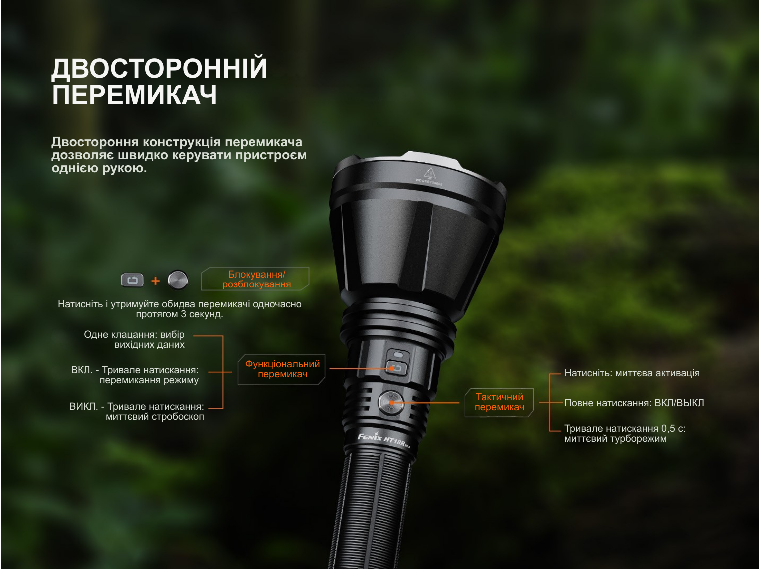 Опис далекобійного ліхтаря Fenix HT18R v.2.0: