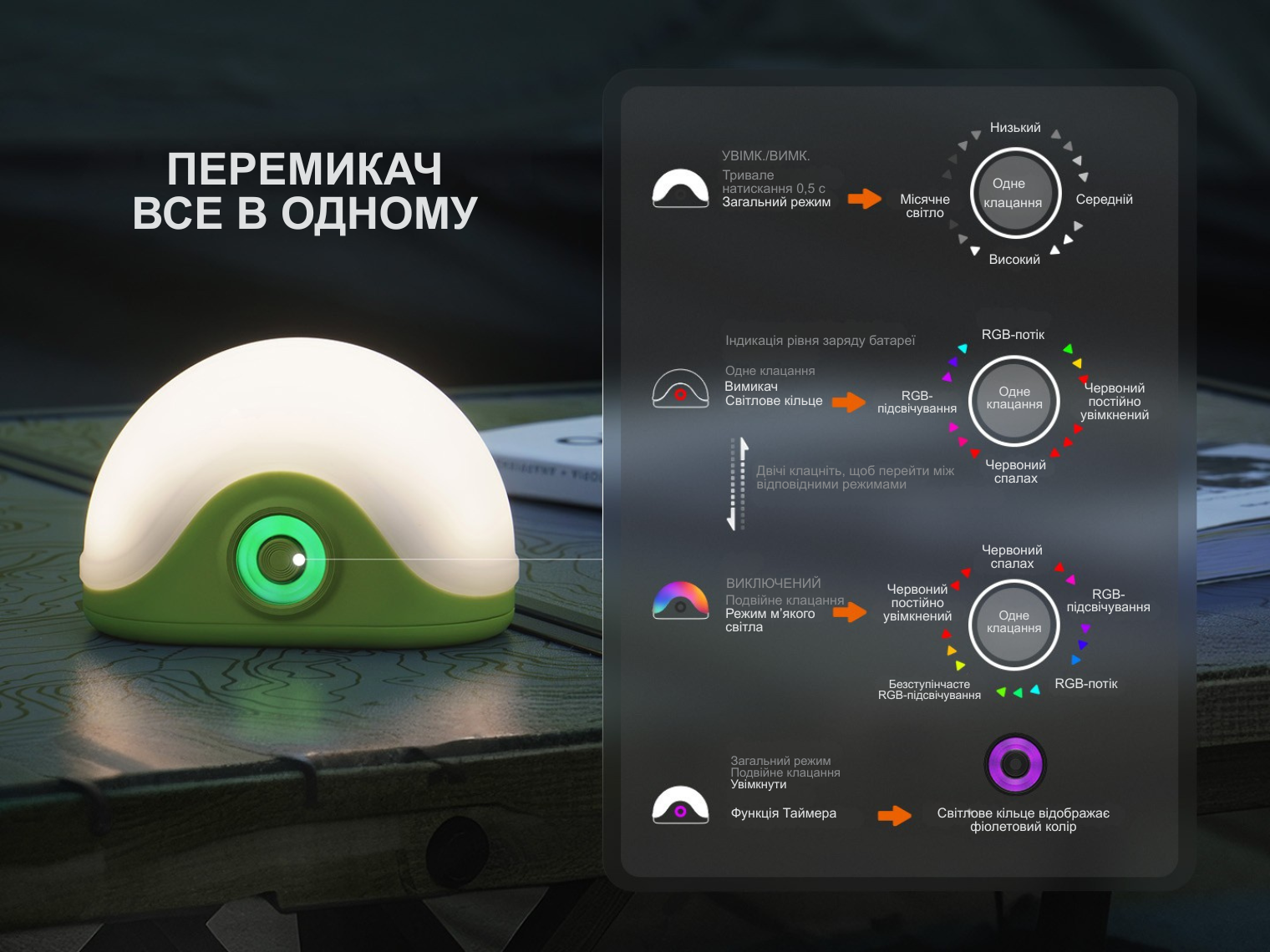 Опис кемпінгового ліхтаря Fenix CL20R V.2.0, зеленого: