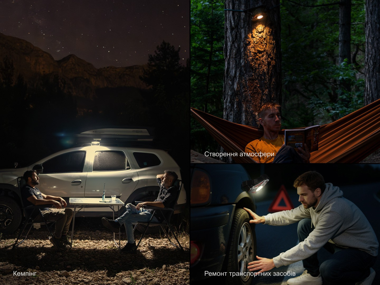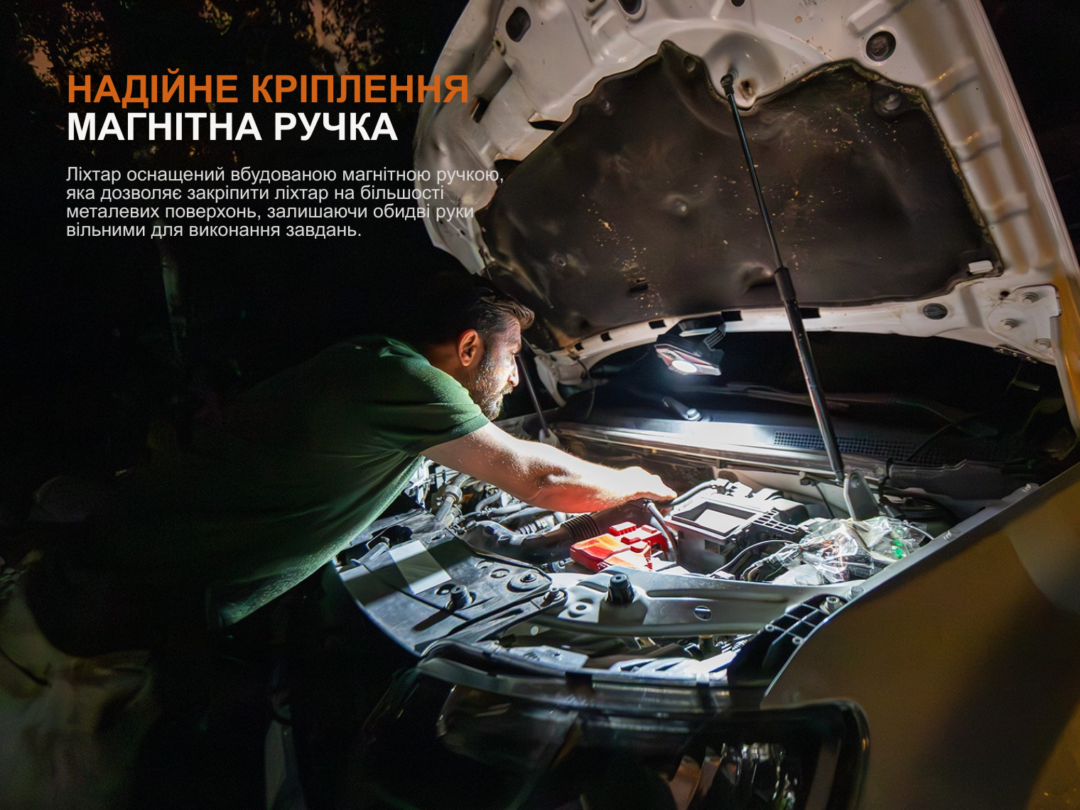- кемпінговий багатофункціональний ліхтар Fenix CP50R з магнітним руківʼям та різьбовим з'єднанням;