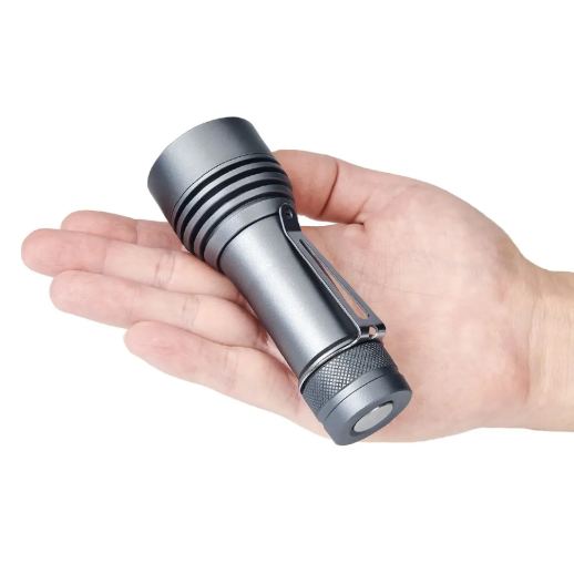 Модель працює на літій-іонній батареї 21700. Також можете задіяти батарейку форм-фактора 18650, разом з адаптером. Світить ліхтар на трьох діодах Cree XHP50.2, при цьому, термін експлуатації діодів досягає 50 тисяч годин. Скляна лінза забезпечена покриттям антивідблиску. Відбивач зі сплаву алюмінію дає рівний і широкий промінь.