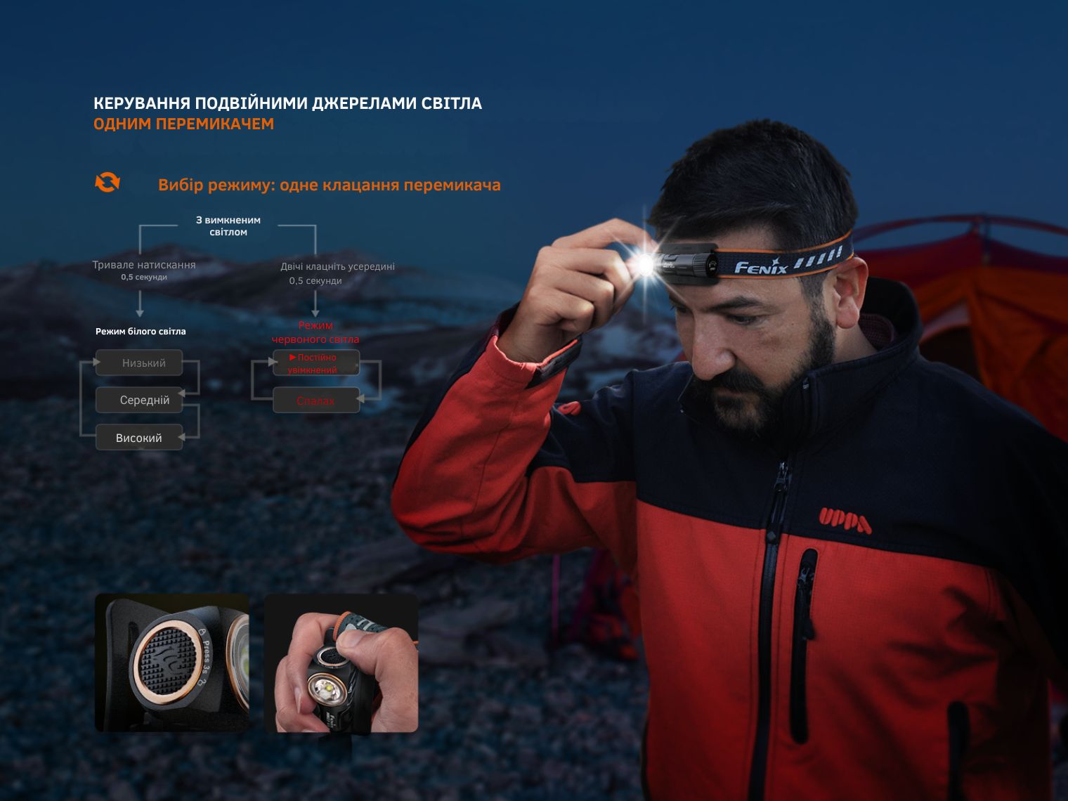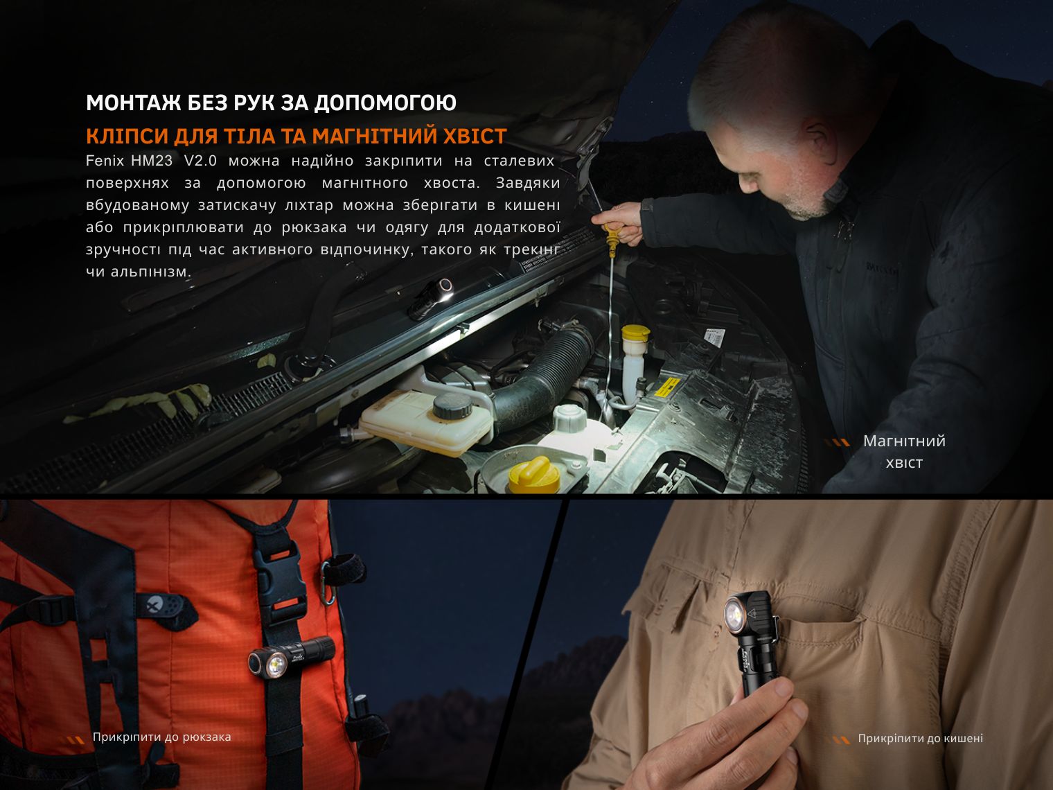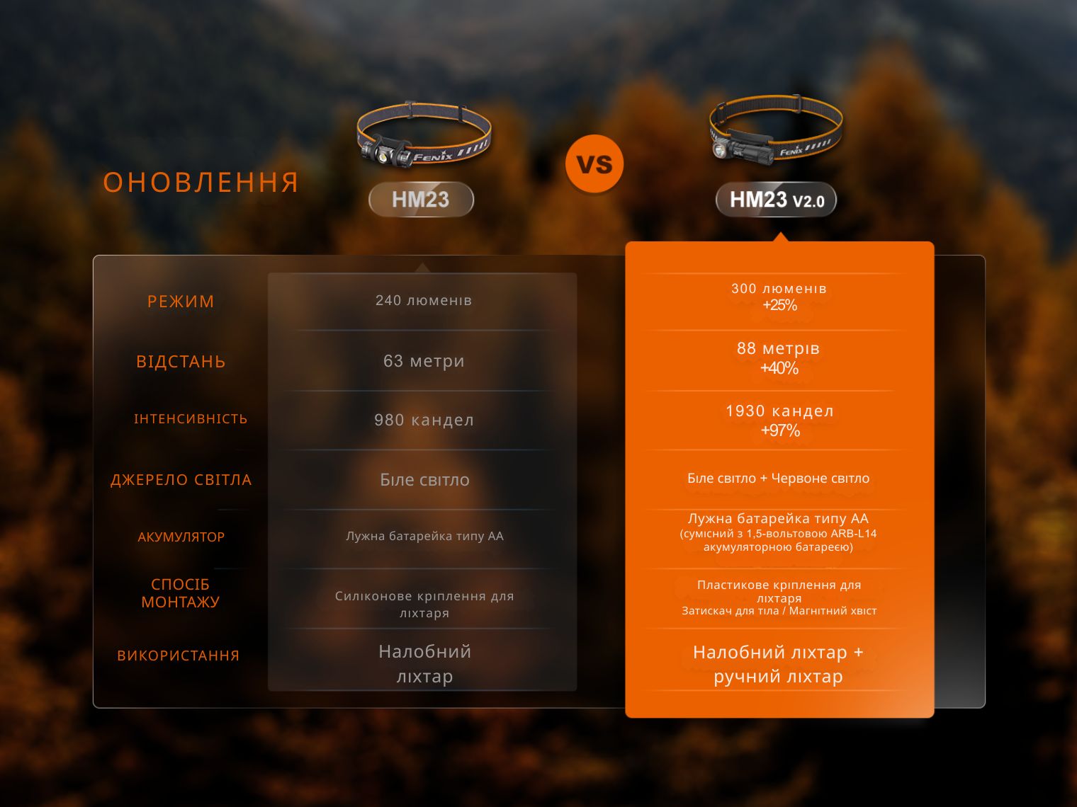 Опис налобного ліхтаря Fenix HM23 V2.0: