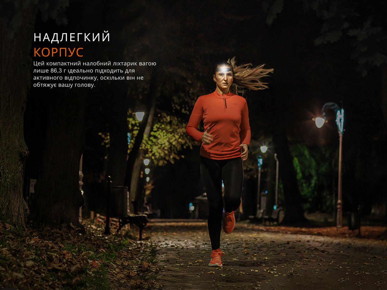 Fenix HM23 V2.0 — мультиформатний ліхтар з налобною перфорованою резинкою, доповненою світловідбивними елементами.