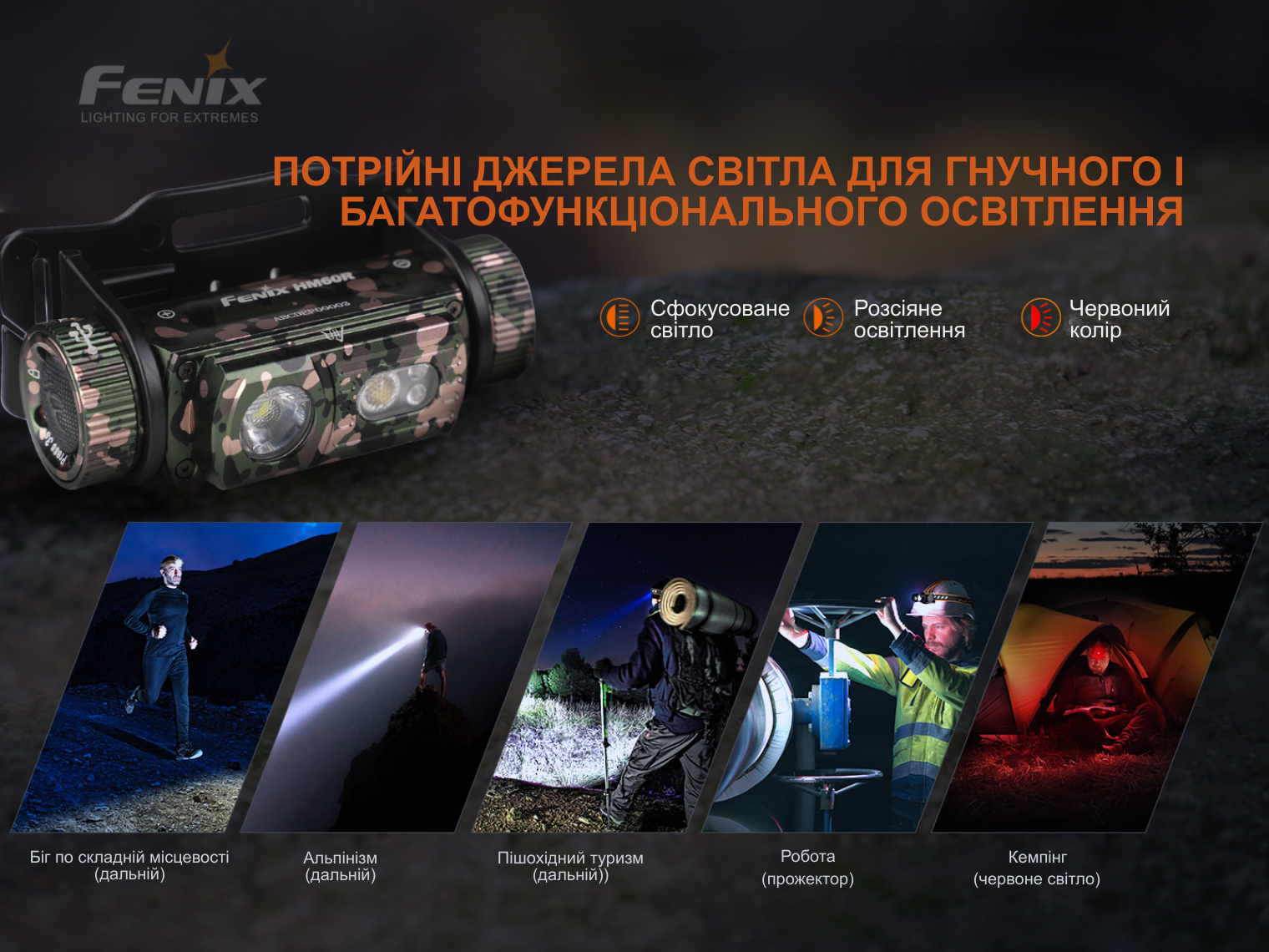Опис ліхтаря налобного Fenix HM60R, камуфляж | Лімітована серія: