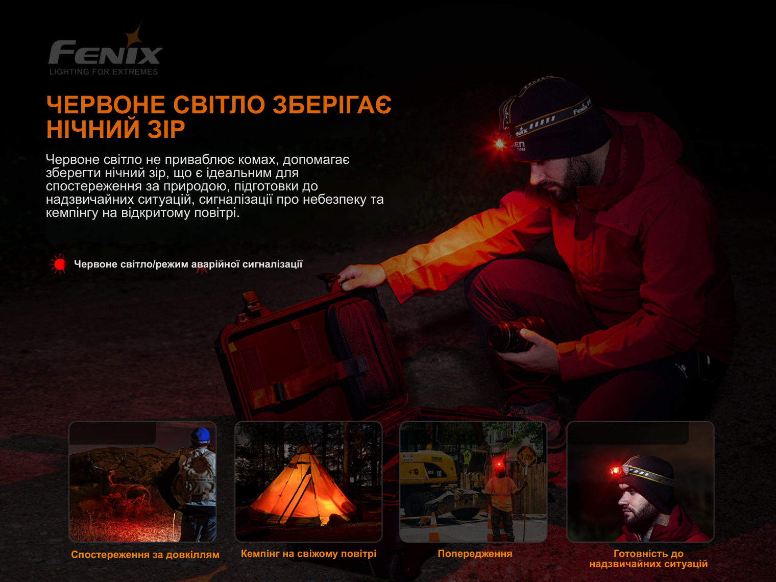 Поєднання потужного дальнього світла (1300 люмен), нейтрального діода з високим індексом CRI для роботи поблизу та червоного світла робить його універсальним інструментом для будь-яких сценаріїв.