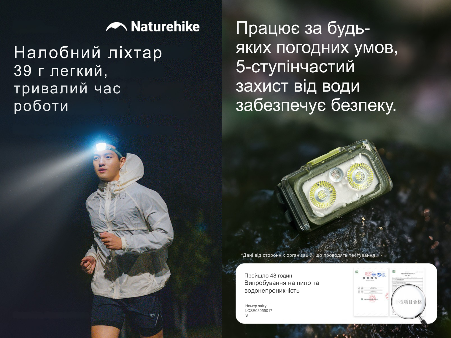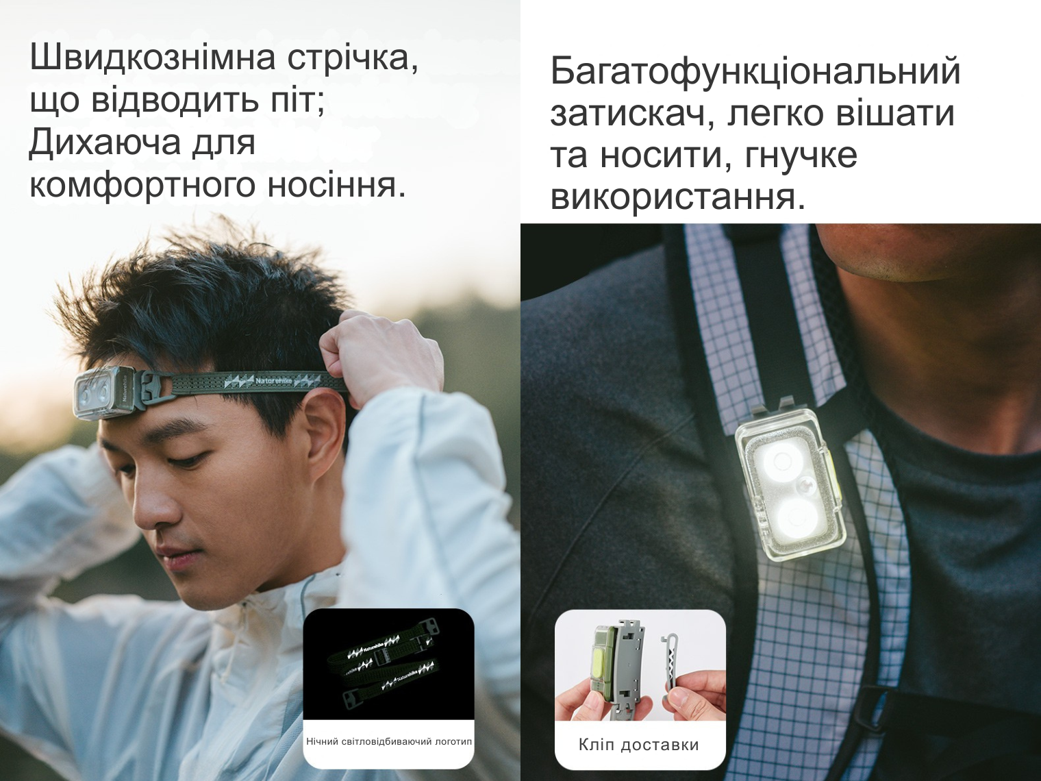 - ліхтар Naturehike зі знімною кліпсою та налобним кріпленням;