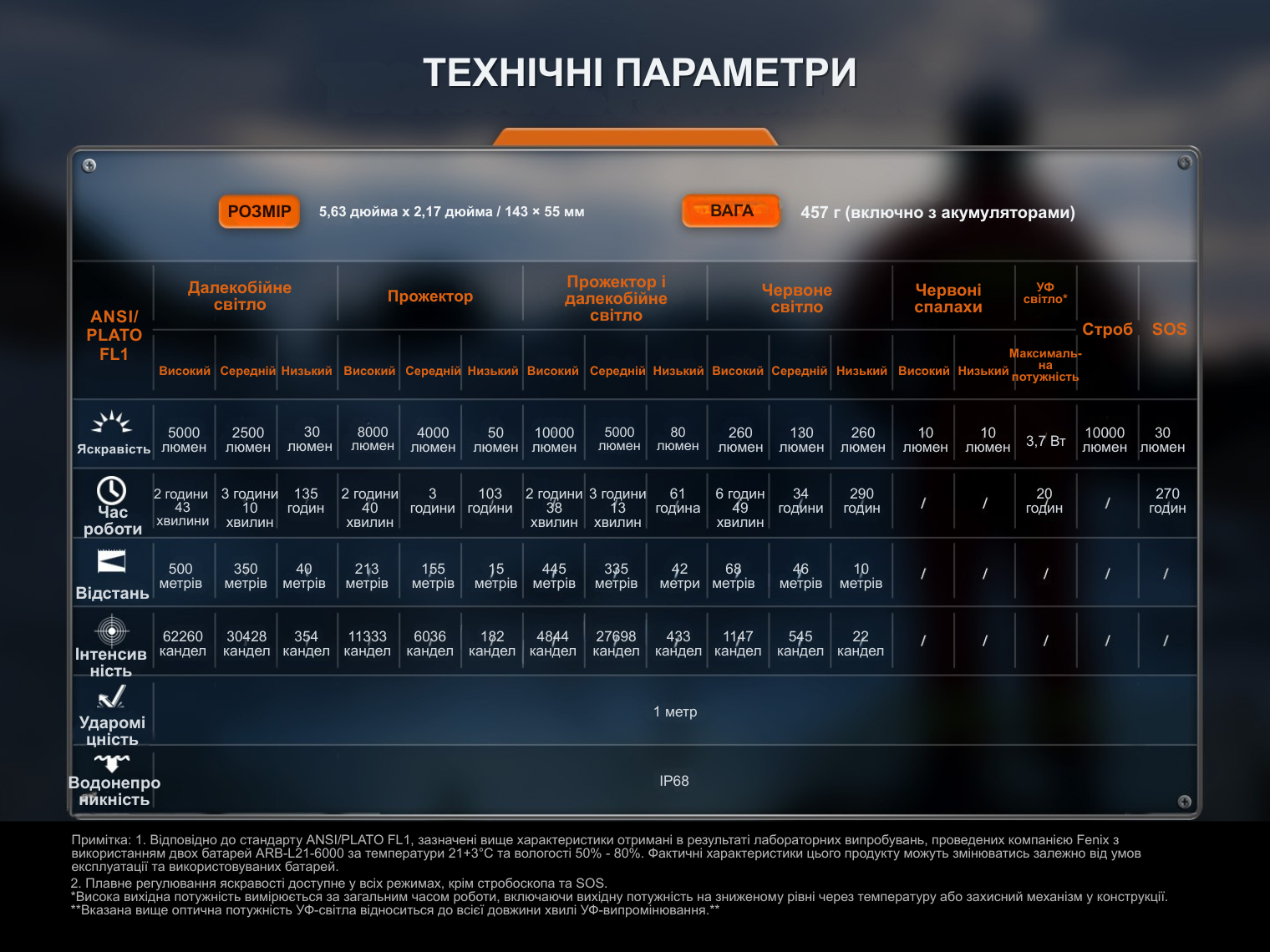Зверніть увагу! Час роботи вказано з урахуванням того, що ліхтар автоматично знижує потужність для захисту від перегріву.