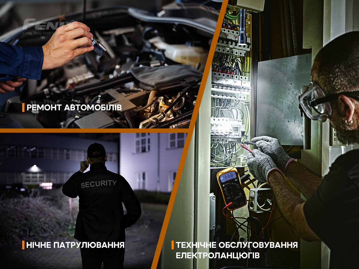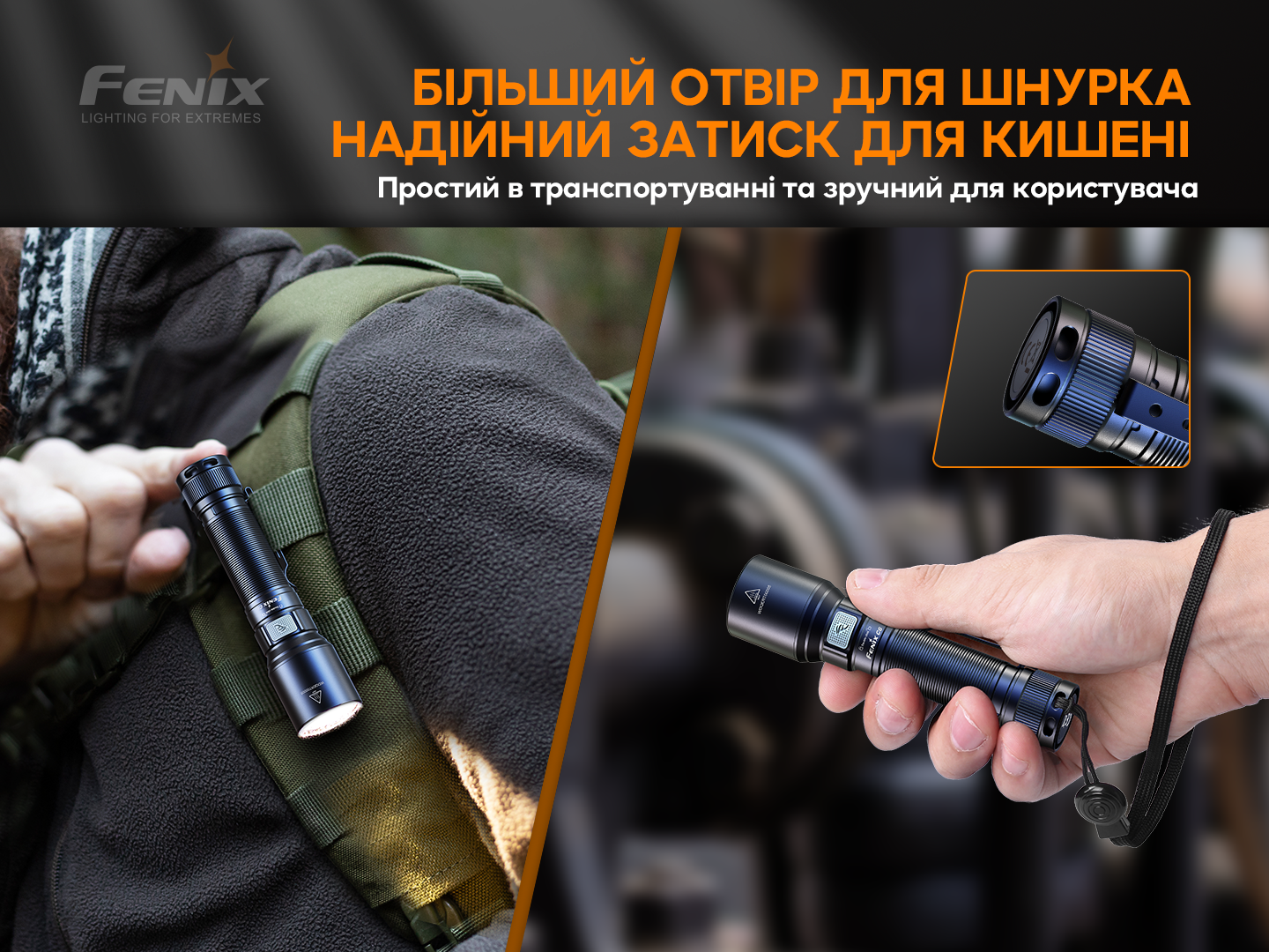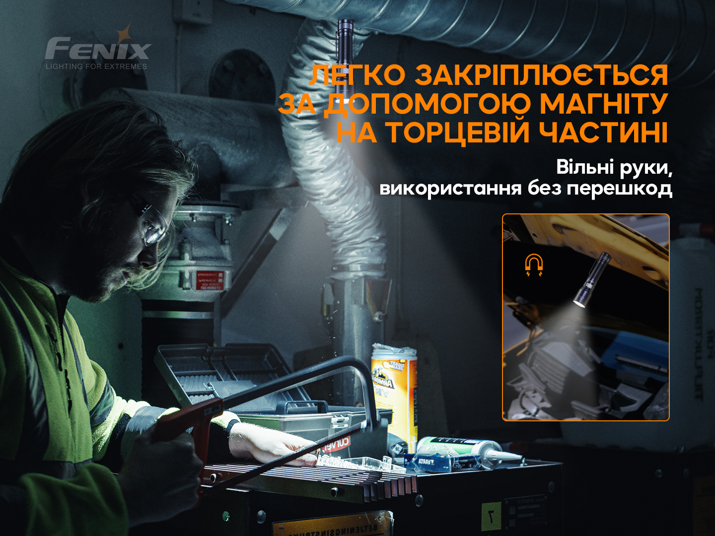 - ручний ліхтар Fenix з магнітом у хвості та знімною кліпсою;