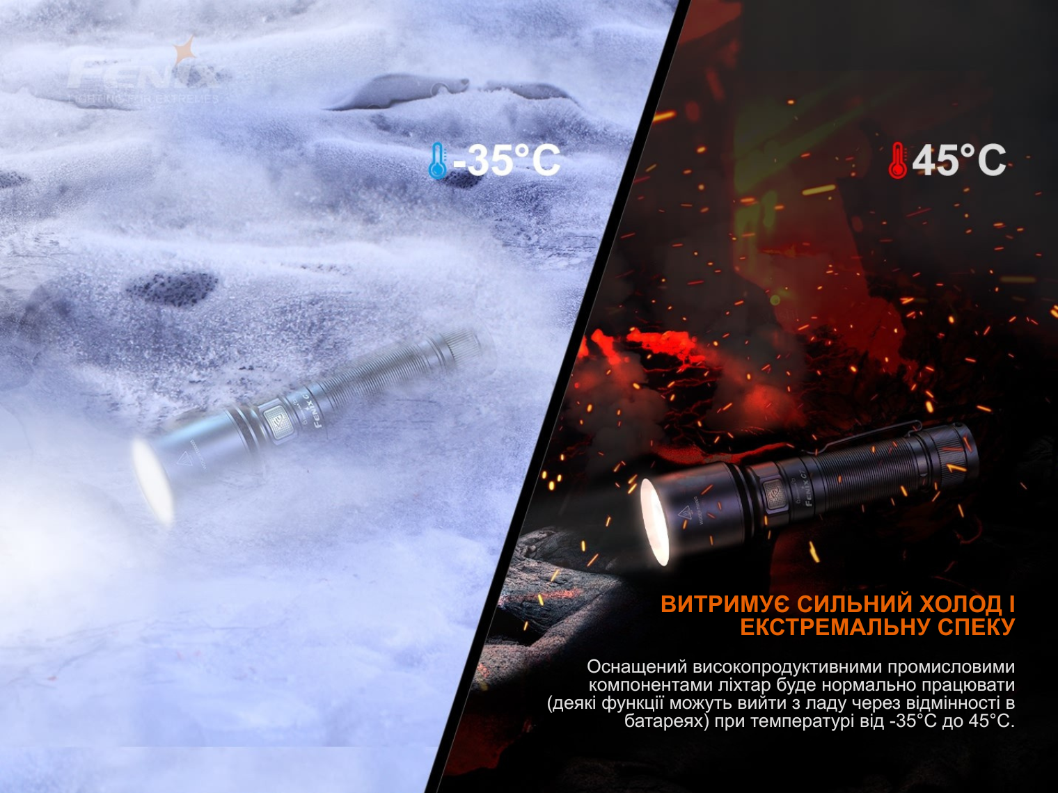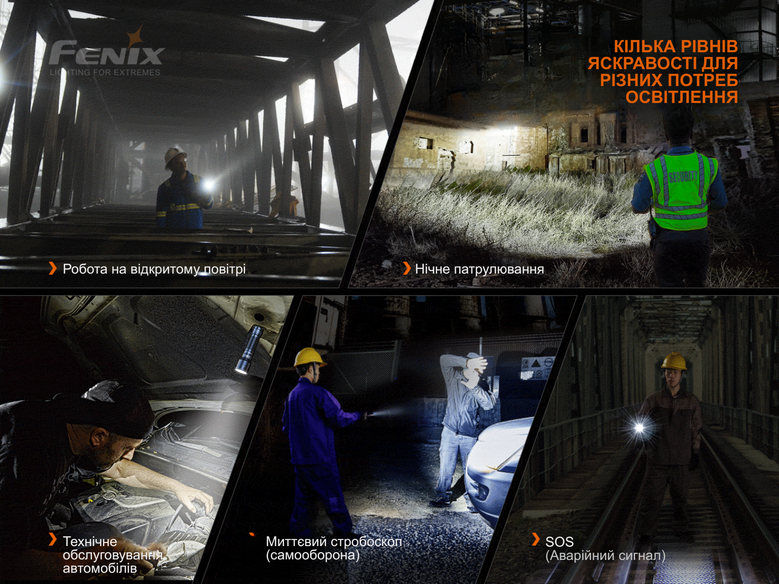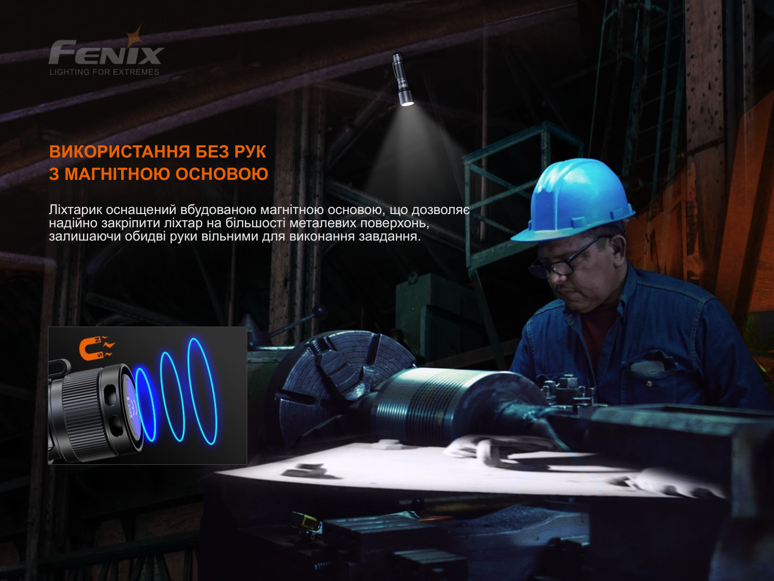 - ручний ліхтар Fenix з вбудованим магнітом та знімною кліпсою зі сталі;