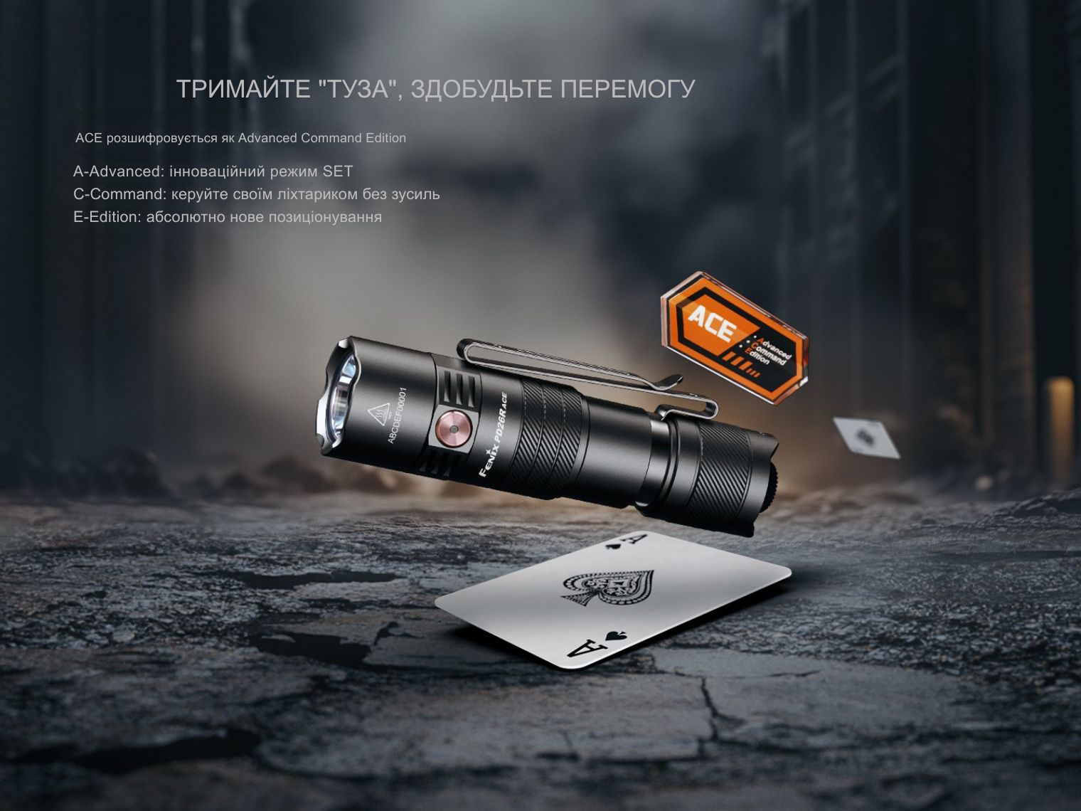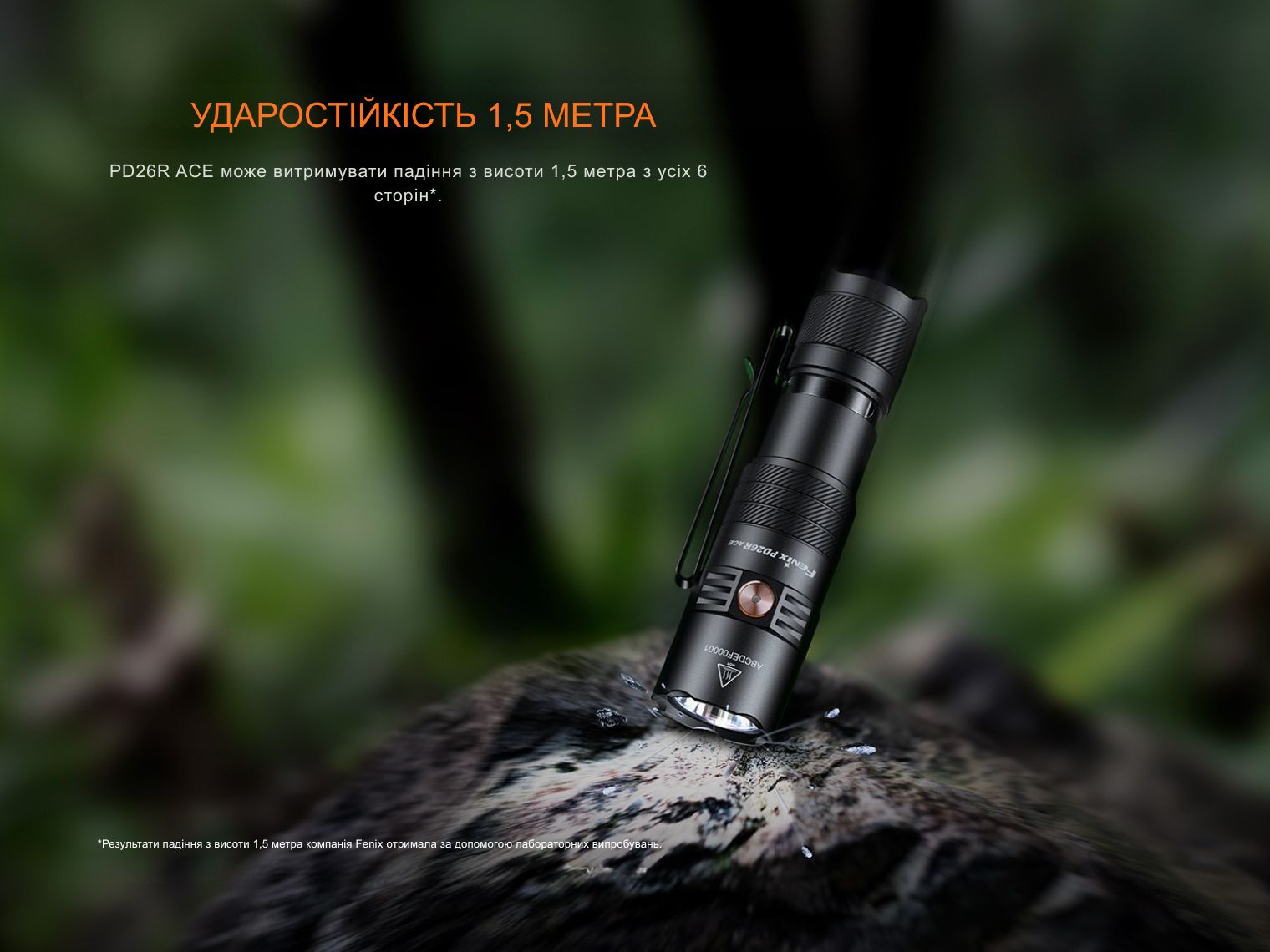 - тактичний ліхтар Fenix PD26R ACE зі знімною кліпсою;