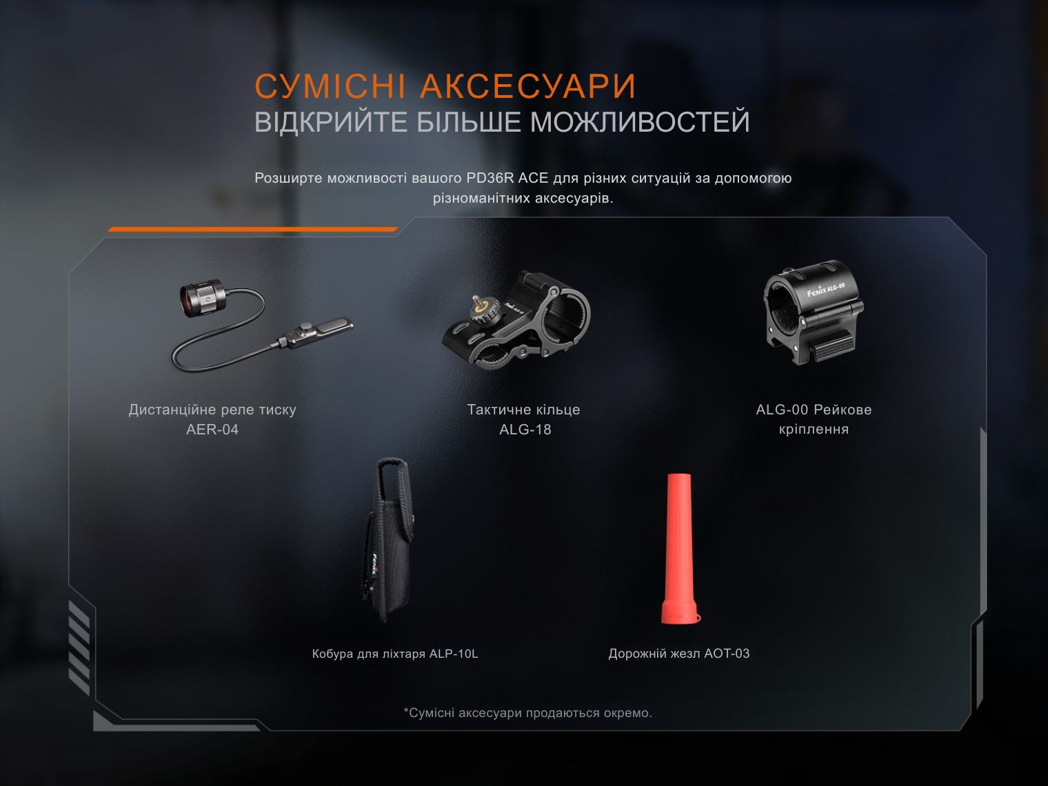 - тактичний ліхтар Fenix PD36R ACE з ексклюзивною кнопкою керування SET;