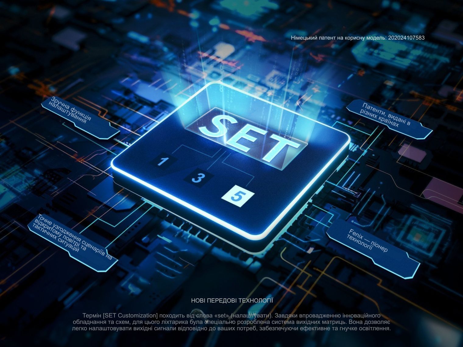 Відмінна риса ліхтарів лінійки ACE — ексклюзивна кнопка SET. З її допомогою можна вибрати один зі встановлених профілів: Option 1 (1 вихід), Option 2 (3 виходи) або Option 3 (5 виходів).